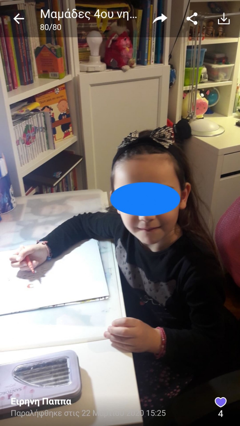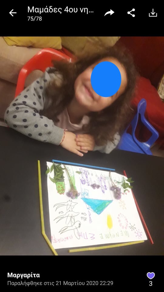 Μια πρωτόγνωρη κατάσταση ζούμε όλοι μας μικροί και μεγάλοι τον τελευταίο μήνα. Μας λείπει το σχολείο μας με τα χαρούμενα προσωπάκια των μικρών μαθητών μας! Μας λείπει η αλληλεπίδραση της ζωντανής επαφής που είχαμε καθημερινά γονείς, μαθητές και εκπαιδευτικοί! Παρόλα αυτά είναι ωραίο να βλέπουμε τα γελαστά τους πρόσωπα έστω από τις φωτογραφίες που μας στείλανε κάποιες μαμάδες, που δείχνουν στιγμές από το σπίτι! Γεμίζουμε κουράγιο και αισιοδοξία από αυτές τις εικόνες και στέλνουμε όλη μας την αγάπη στα παιδάκια μας και τις οικογένειές τους!