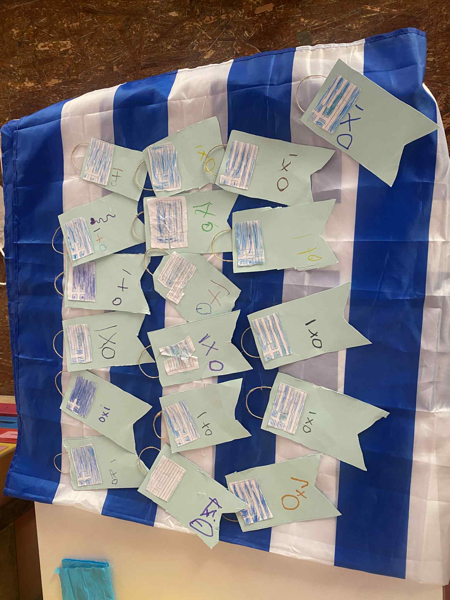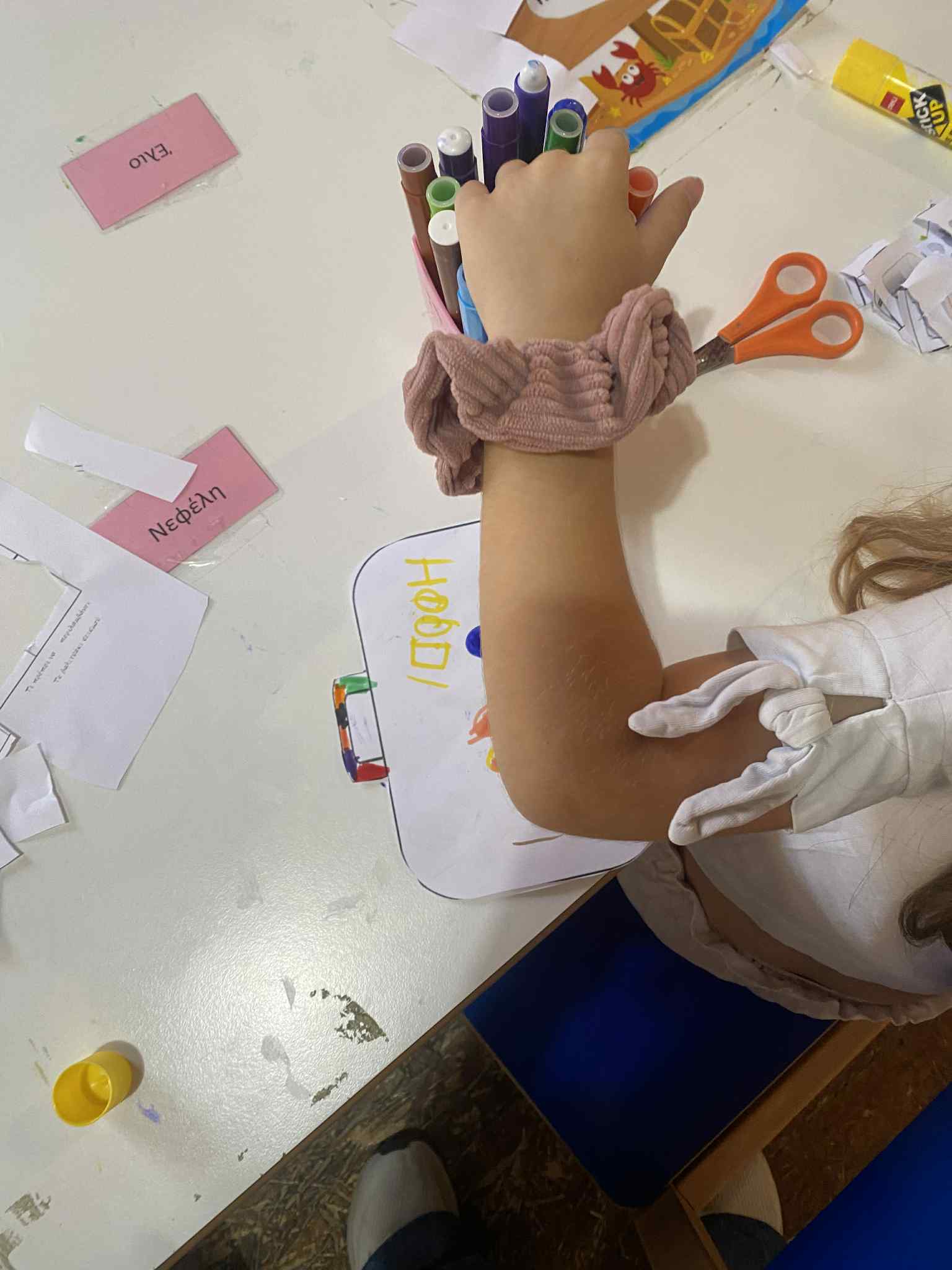 Δουλέψαμε με έννοιες, βάζοντας σε σειρά τα μπουκάλια λαδιού από το μεγαλύτερο στο μικρότερο. Τα παιδιά δοκιμάστηκαν και σε άλλες δραστηριότητες που τους έδωσαν την ευκαιρία να αναπτύξουν και άλλες δυνατότητές τους.