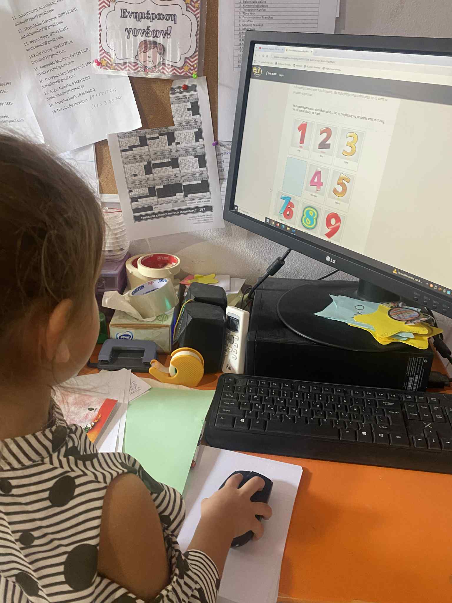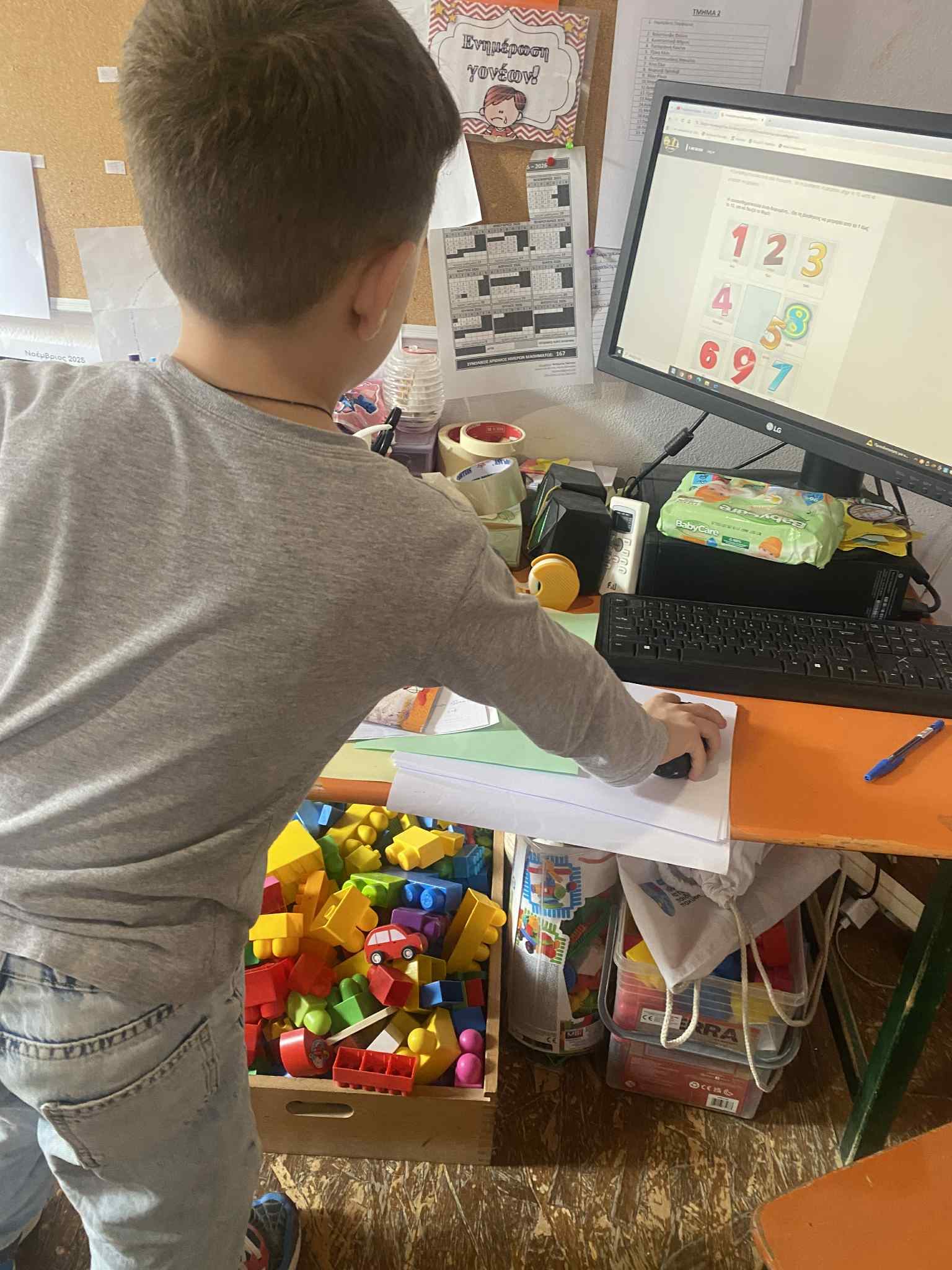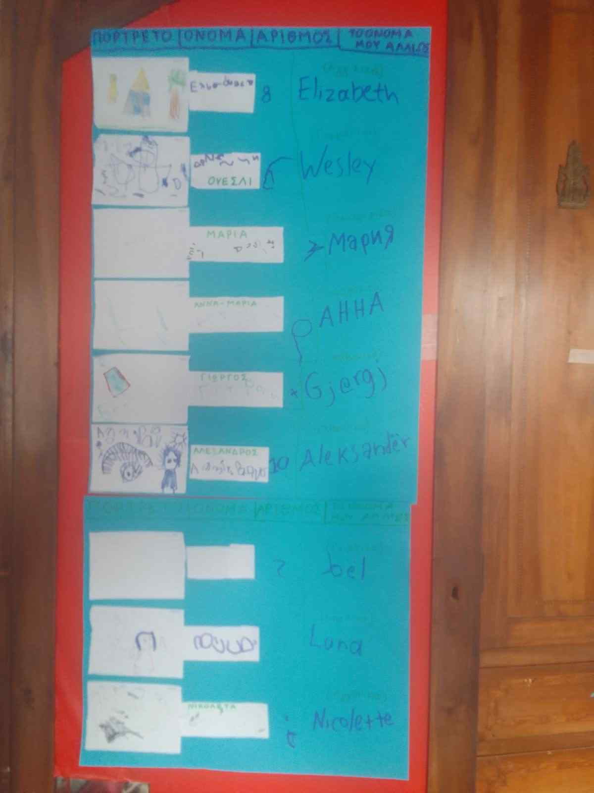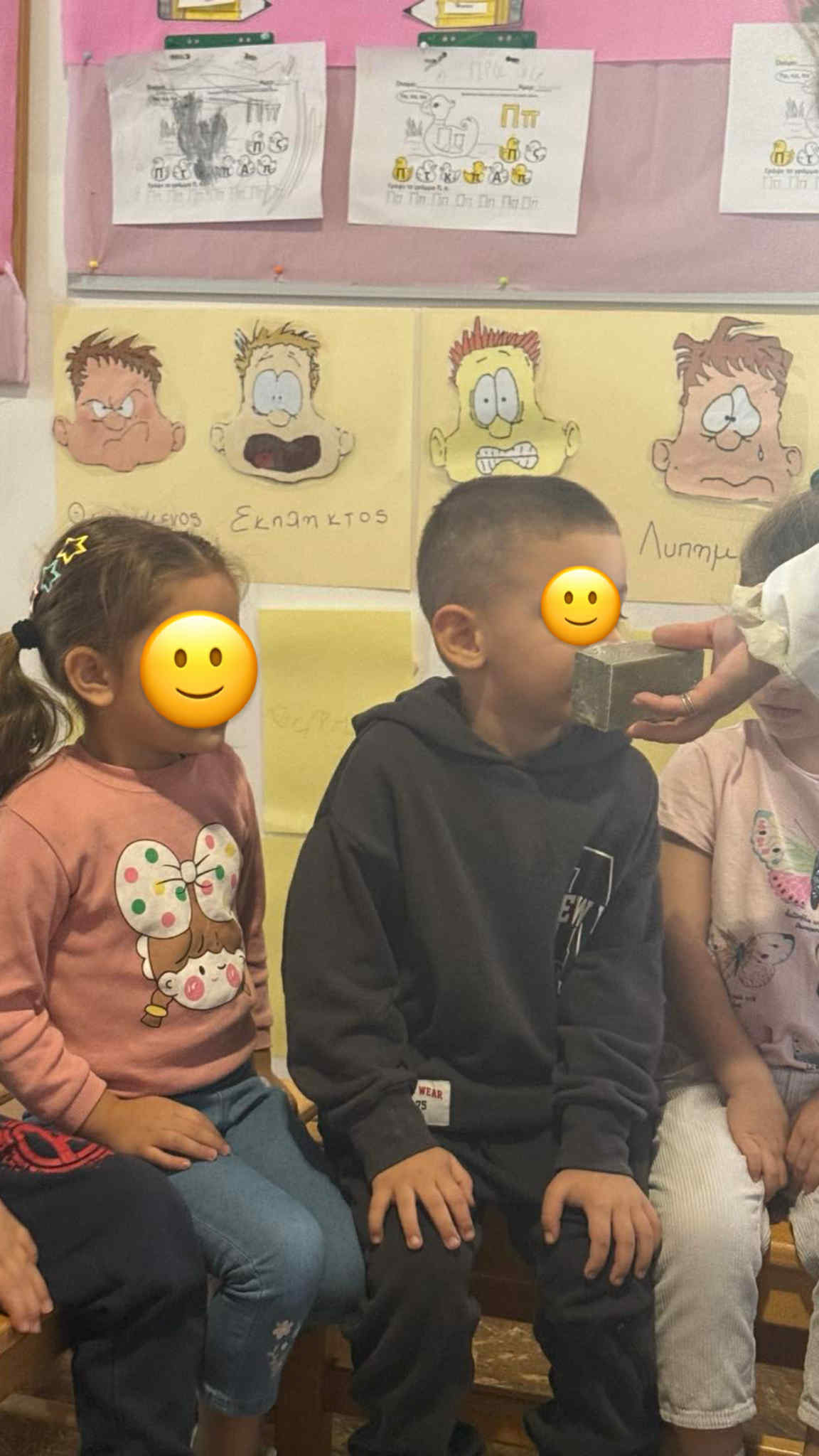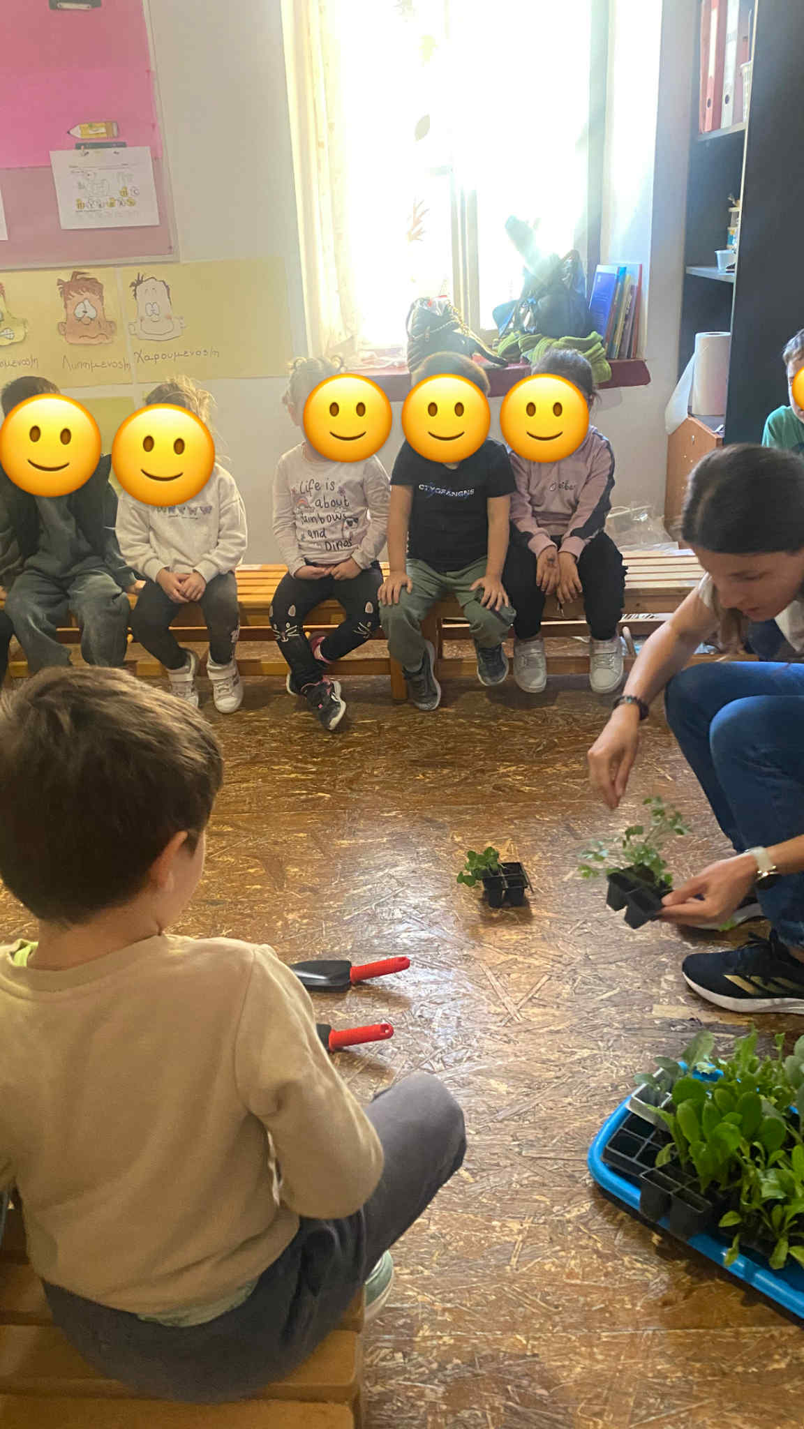 Με αφορμή τη θεματική της ελιάς, μάθαμε και τη φωνούλα Ε, ε και όσες λέξεις αρχίζουν από αυτήν τη φωνούλα. Για την καλύτερη κατανόηση της φωνής Ε, ε, τα παιδιά περπάτησαν το γράμμα, το σχεδίασαν με τον μαρκαδόρο τους και πλέον το αναγνωρίζουν και το γράφουν.