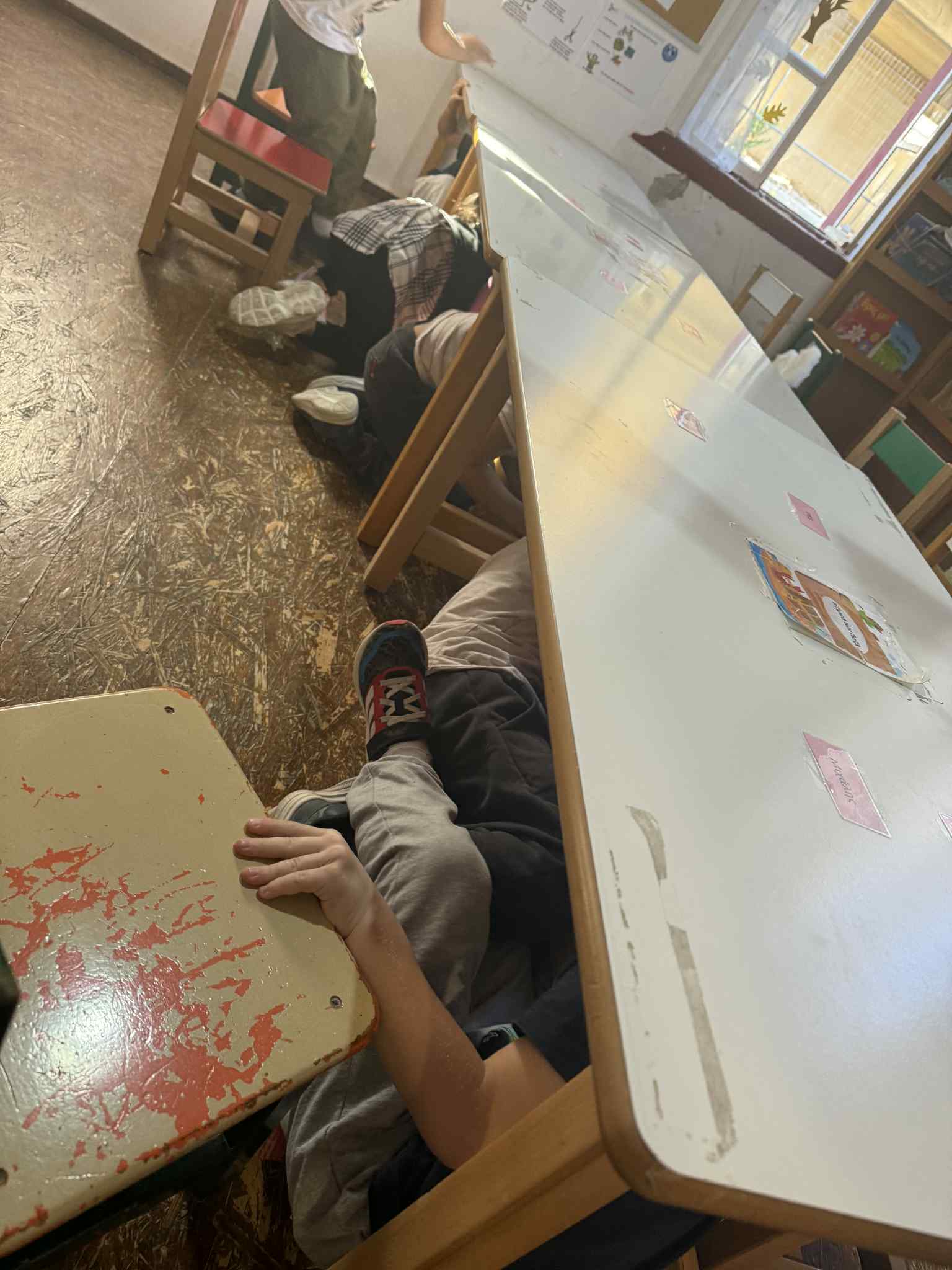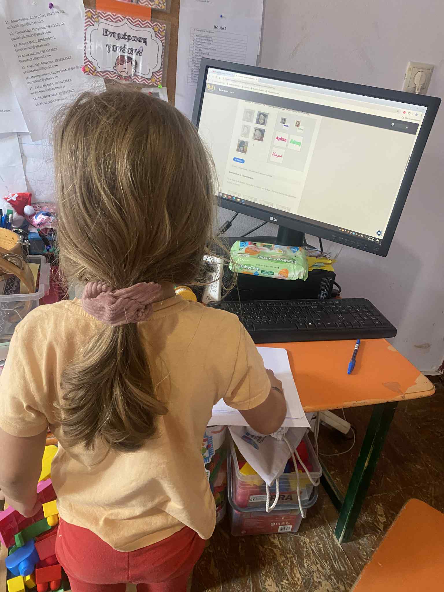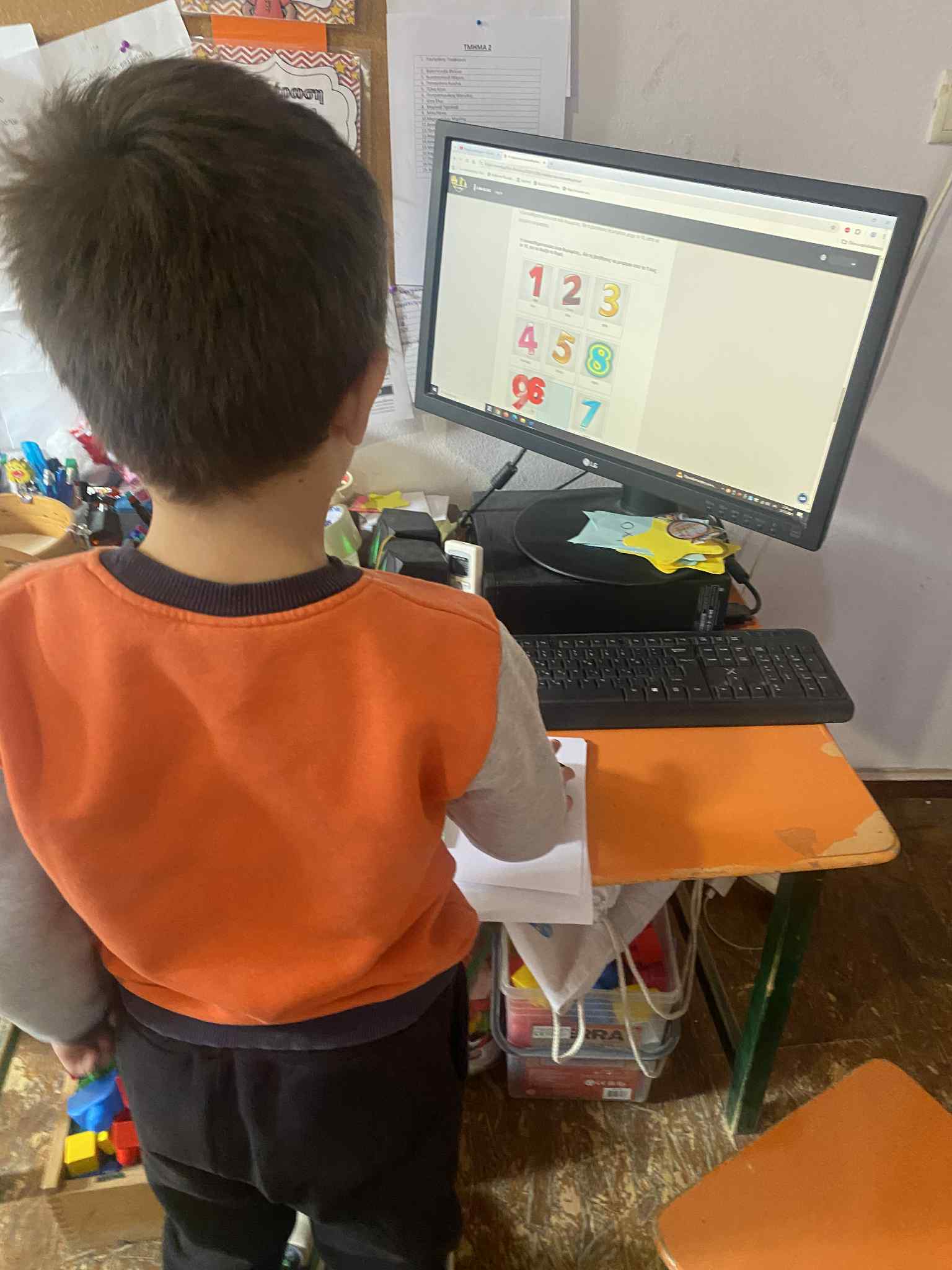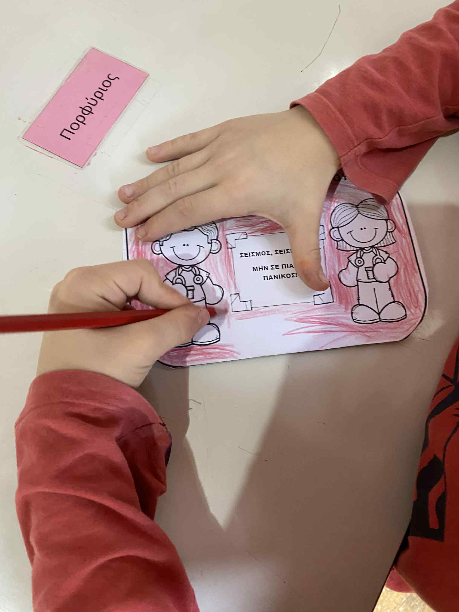 Με αφορμή τη θεματική της ελιάς, μάθαμε και τη φωνούλα Ε, ε και όσες λέξεις αρχίζουν από αυτήν τη φωνούλα. Για την καλύτερη κατανόηση της φωνής Ε, ε, τα παιδιά περπάτησαν το γράμμα, το σχεδίασαν με τον μαρκαδόρο τους και πλέον το αναγνωρίζουν και το γράφουν.
