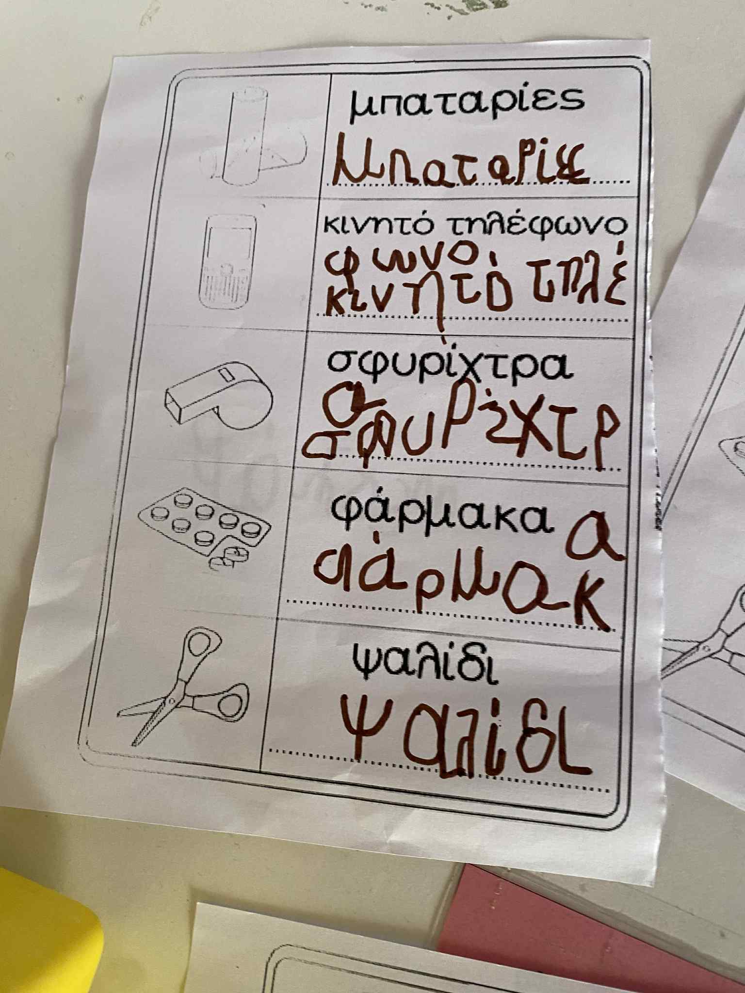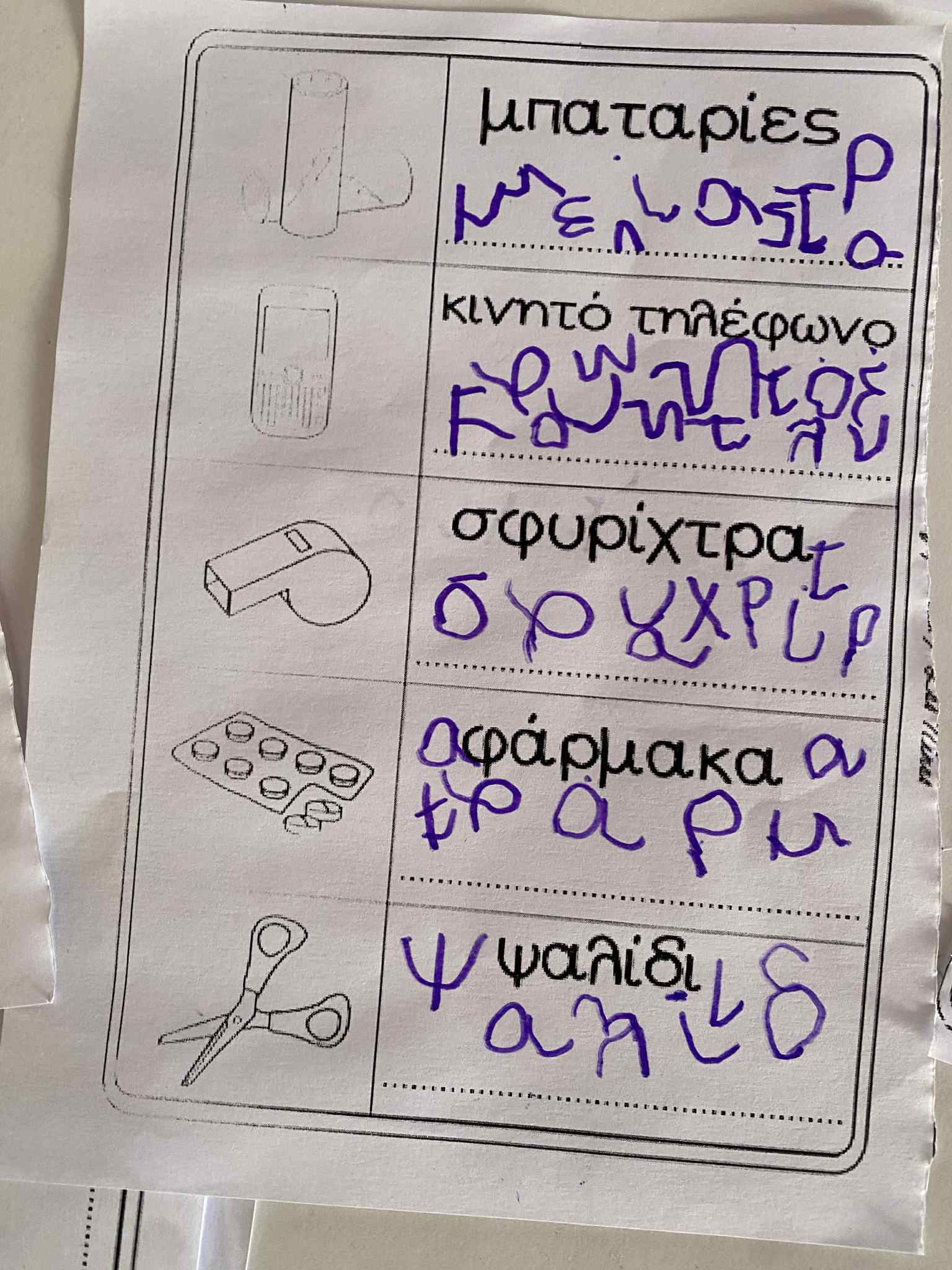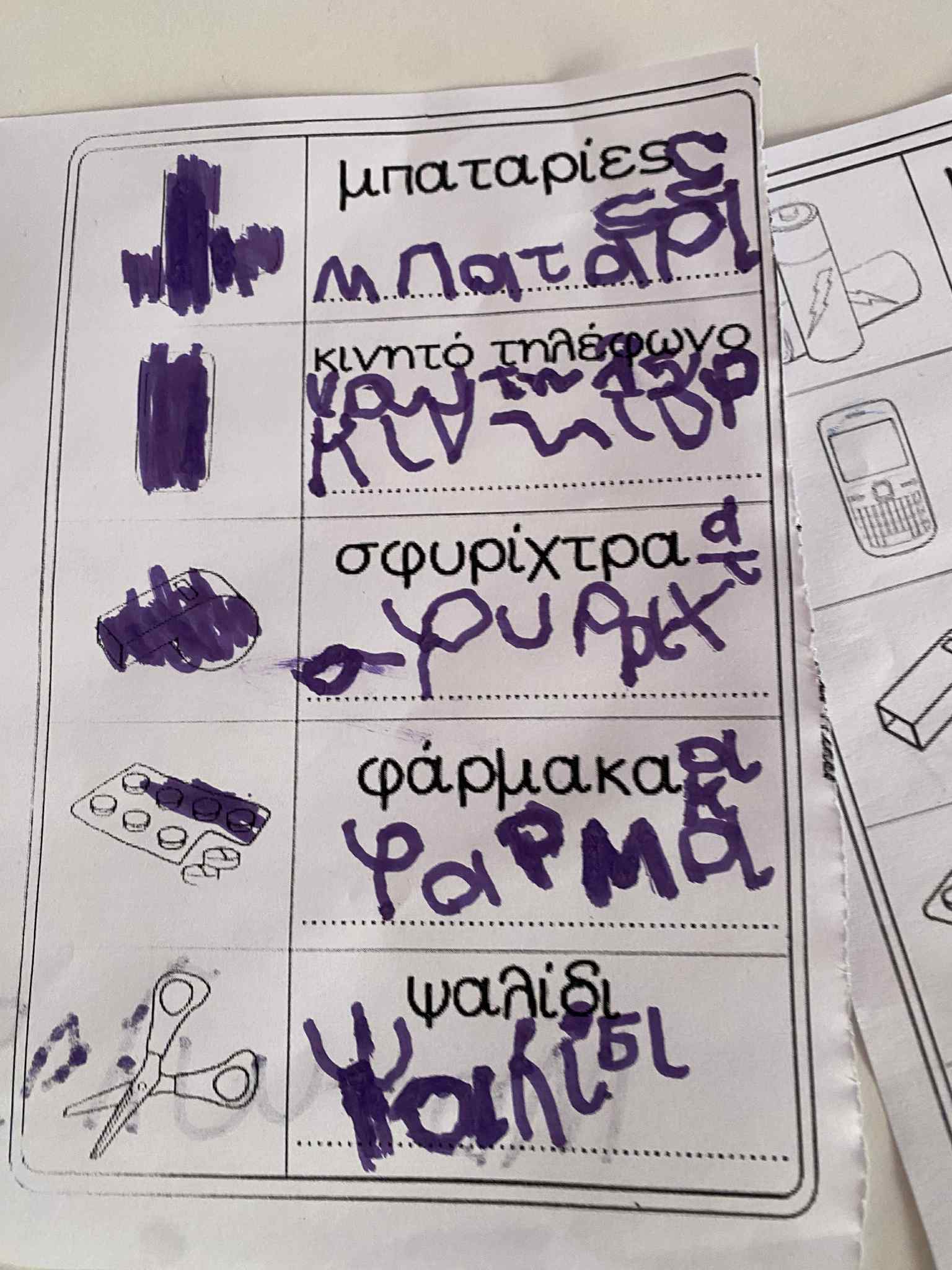 Αφού τα παιδιά είδαν και κατανόησαν το πείραμα, αποτύπωσαν και στο χαρτί ό,τι παρατήρησαν και έγραψαν «όχι» στην ερώτηση αν αναμιγνύεται το λάδι με το νερό.