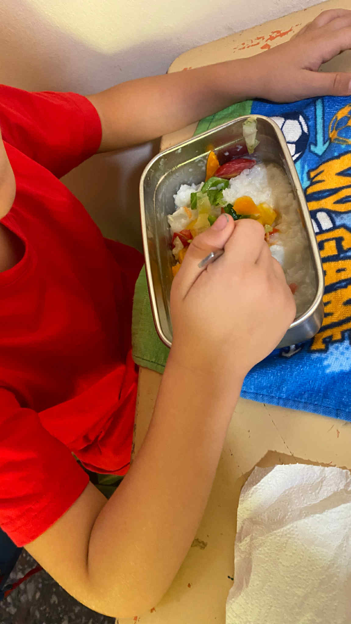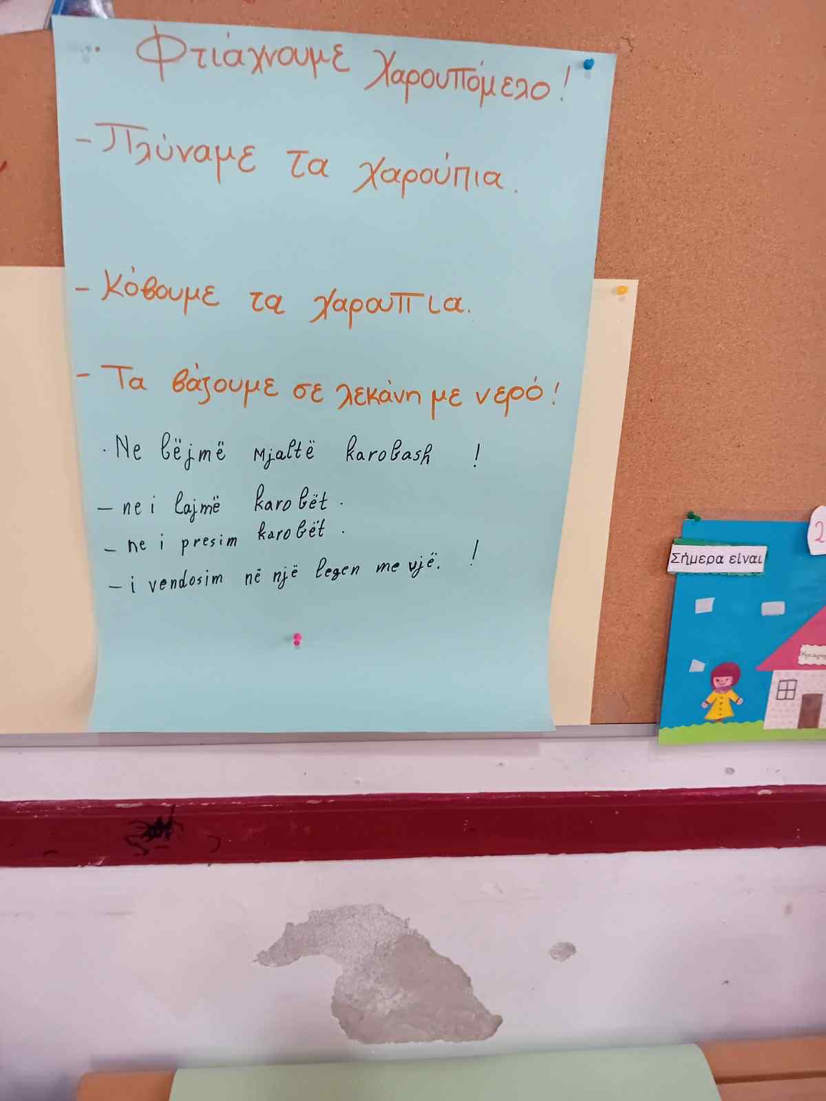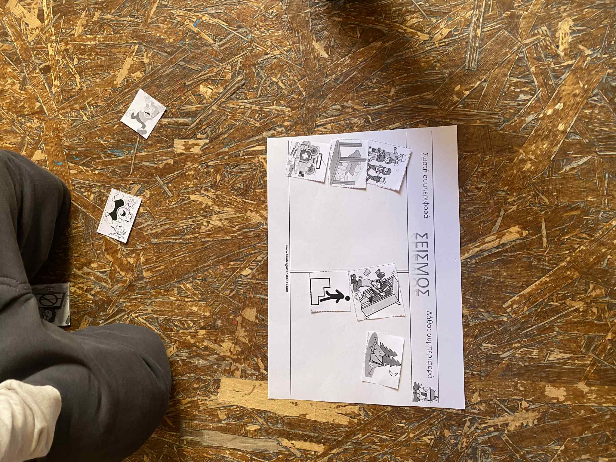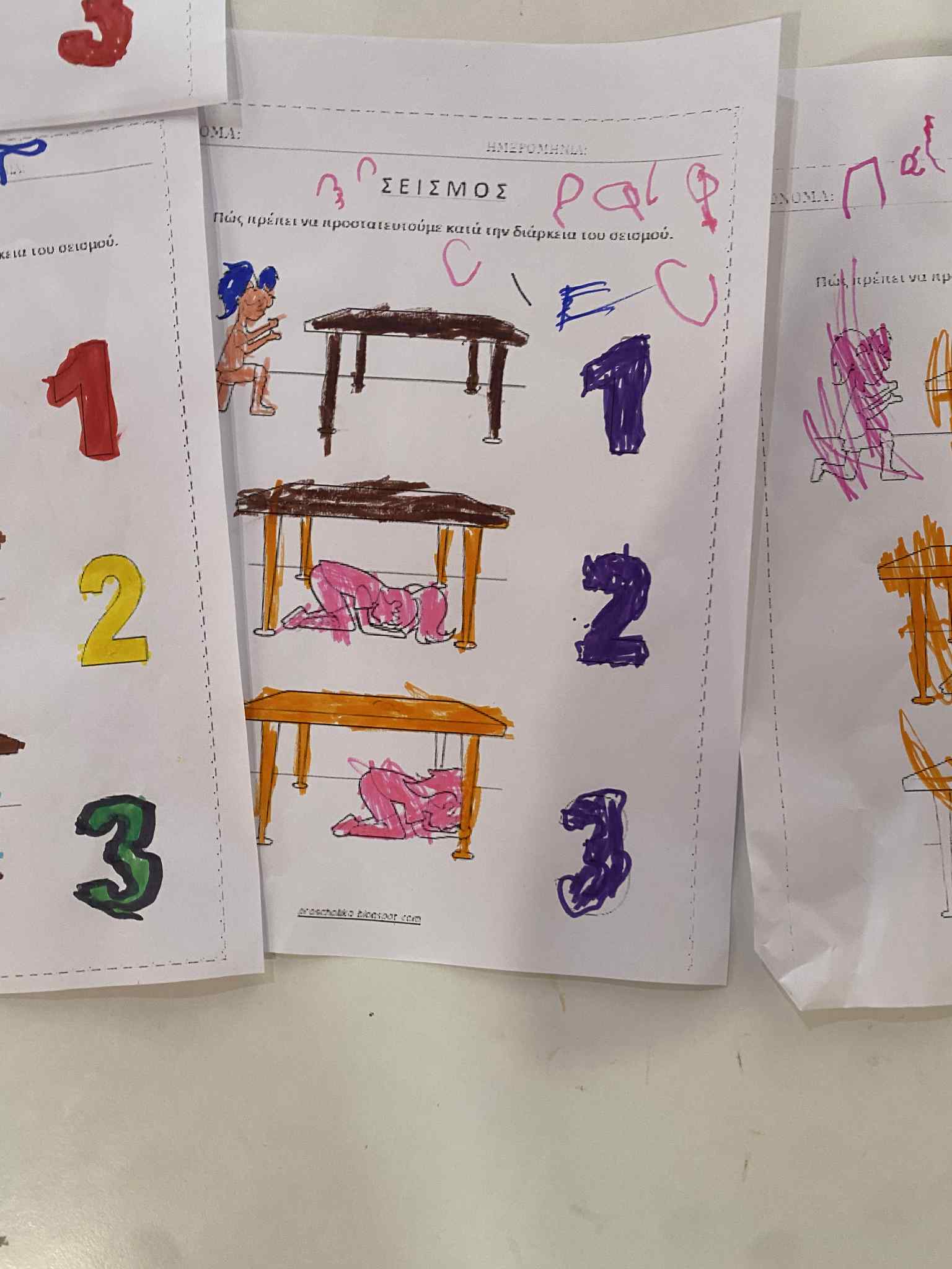Αφού τα παιδιά είδαν και κατανόησαν το πείραμα, αποτύπωσαν και στο χαρτί ό,τι παρατήρησαν και έγραψαν «όχι» στην ερώτηση αν αναμιγνύεται το λάδι με το νερό.