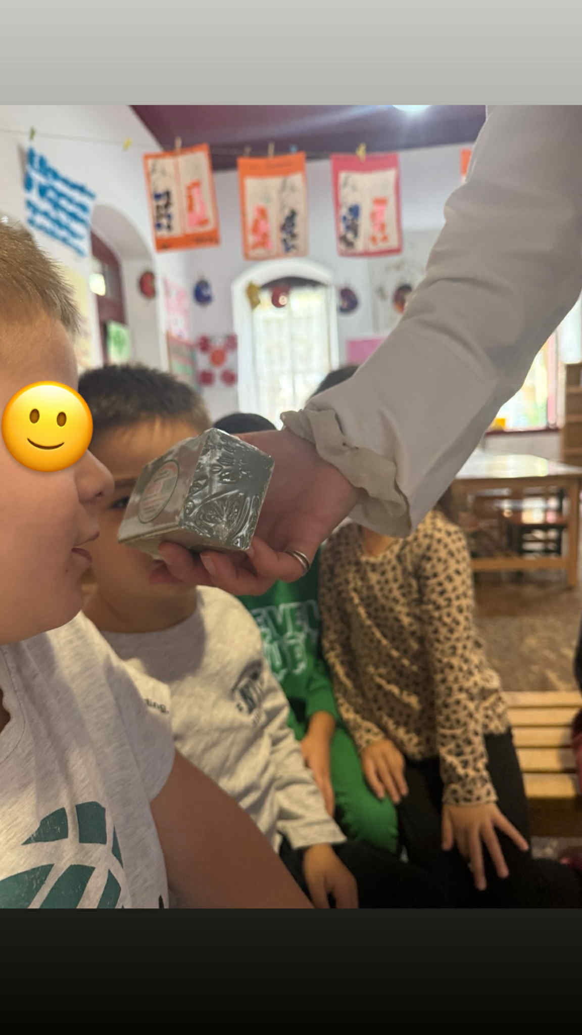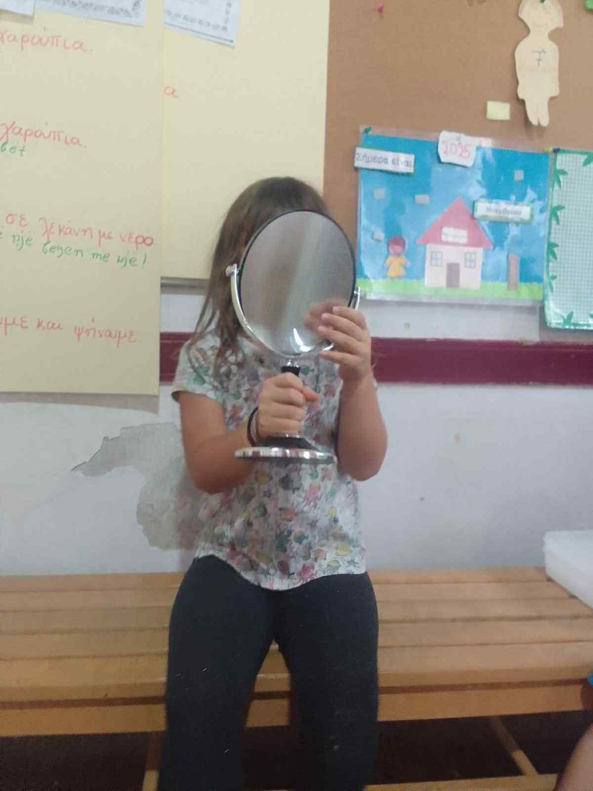 Αφού πιάσαμε, μυρίσαμε και γευτήκαμε την ελιά, είδαμε ένα βίντεο για τη διαδικασία κατά την οποία η ελιά γίνεται λάδι. Σχολιάσαμε το βίντεο και μιλήσαμε για τα προϊόντα που προέρχονται από την ελιά και το λάδι. Τα παιδιά είδαν και μύρισαν το σαπούνι.