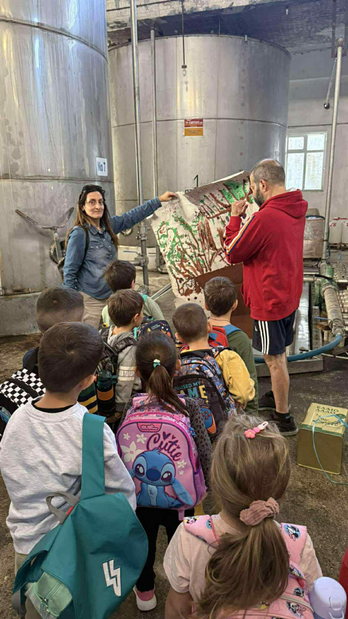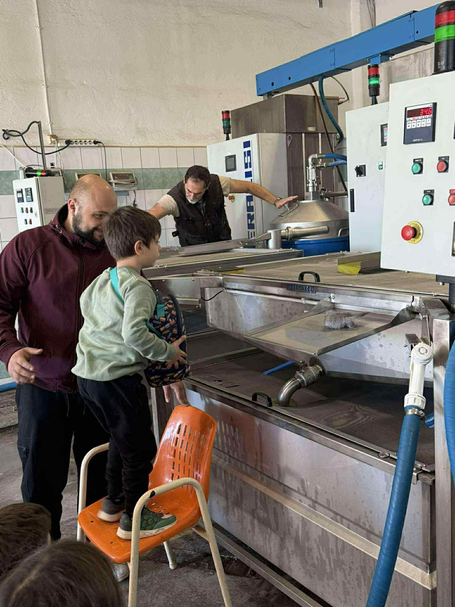 Τα παιδιά είδαν τα μηχανήματα που βοηθούν στην παρασκευή του λαδιού και δοκίμασαν το λάδι που τους δόθηκε από το ελαιουργείο. Στο τέλος, σαν σχολείο, κάναμε κι εμείς ένα δώρο στους ανθρώπους που μας καλοδέχθηκαν στον χώρο τους και μας εξήγησαν τόσα πολλά για την ελιά και το λάδι.