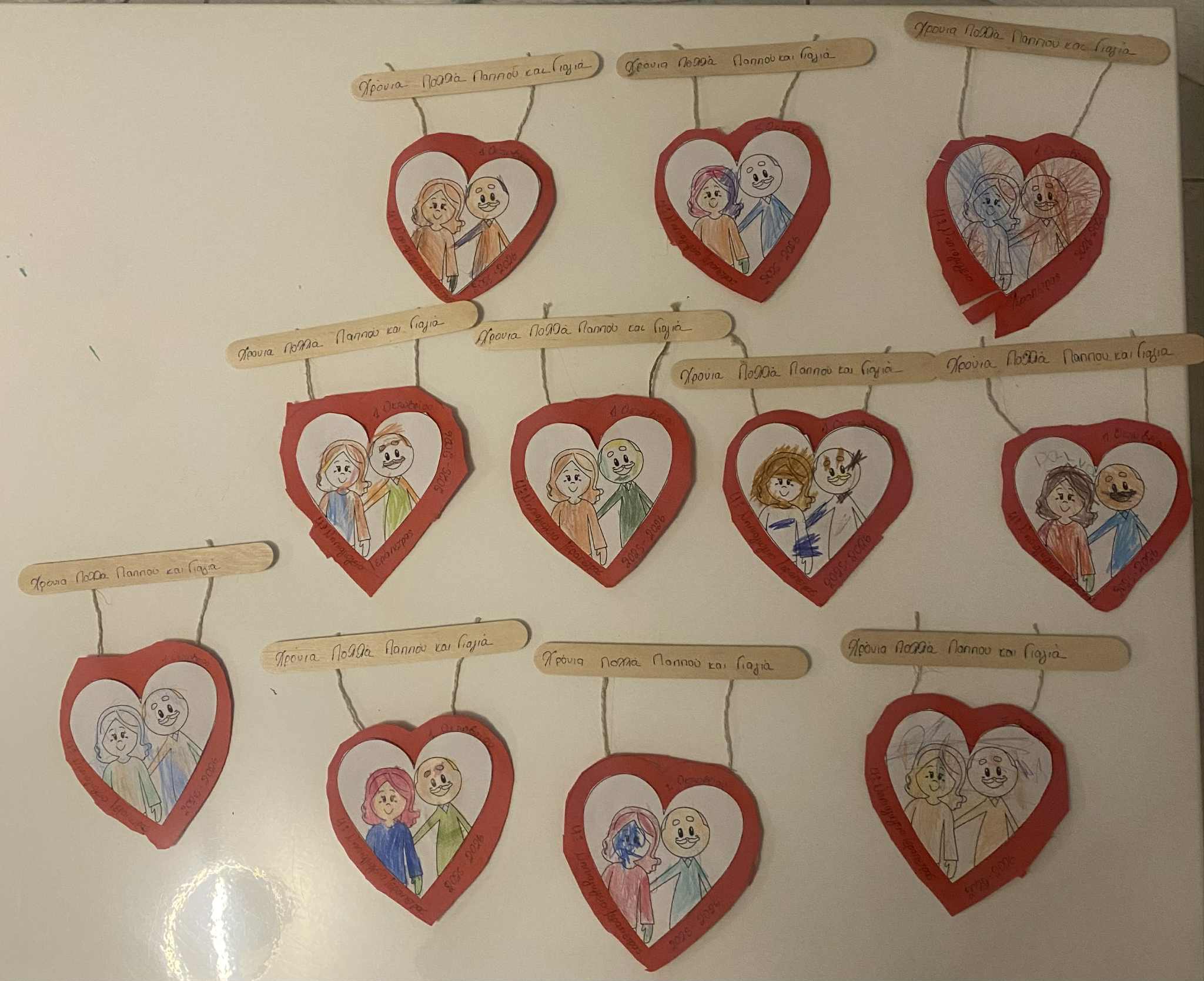 Κάθε παιδί ενθουσιάζεται να μιλάει και να μοιράζεται με την ομάδα του προσωπικές του εμπειρίες. Τα παιδιά μοιράστηκαν ιστορίες και δραστηριότητες που κάνουν μέσα στην ημέρα με τον παππού και την γιαγιά τους. Μας είπαν τα ονόματά τους και με ποιον τρόπο τους φροντίζουν. Έπειτα για να τιμήσουμε την ημέρα, μάθαμε ένα μουσικοκινητικό τραγούδι «Ο Παππούς και η Γιαγιά». Στο τέλος τα παιδιά δημιούργησαν και δωράκια για να τους χαρίσουν. Τα παιδιά έβαλαν όλη τους την τέχνη καθώς έκοψαν, ζωγράφισαν, κόλλησαν και δημιούργησαν υπέροχες κατασκευές!!!!