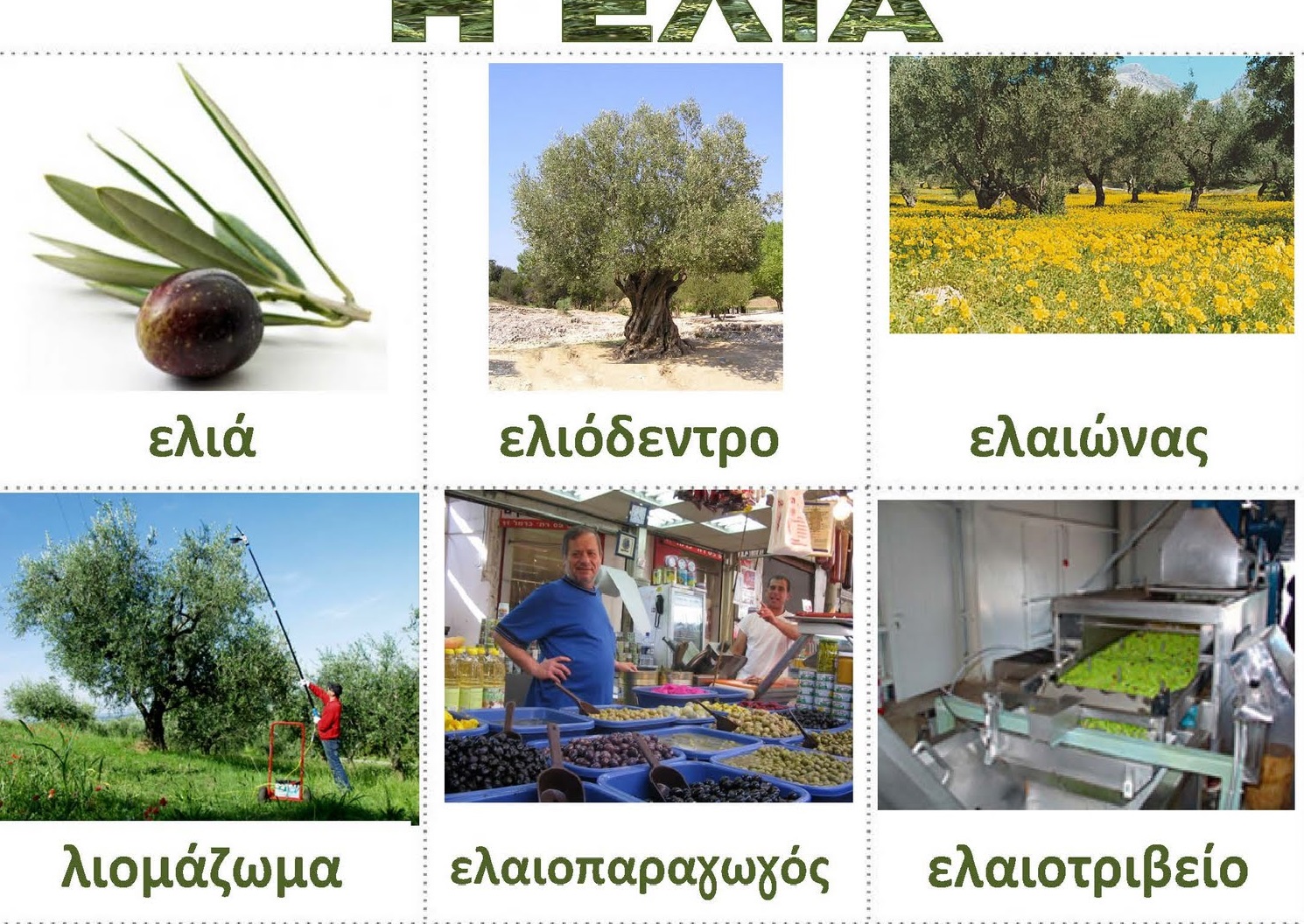 Βρήκαμε σύνθετες λέξεις με την ελιά: ελαιώνας, ελαιόψωμο, ελαιόλαδο κ.α.