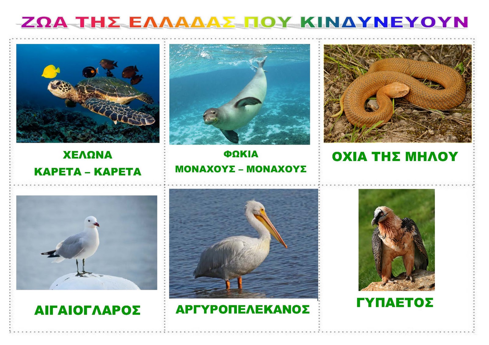 Β. ως προς το θέμα: οι μαθητές 1. να γνωρίσουν τα κυριότερα είδη ζώων που κινδυνεύουν με εξαφάνιση αρχικά σε παγκόσμιο επίπεδο και στη συνέχεια στον ελλαδικό χώρο,