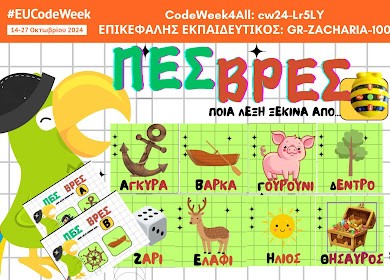 Η Ευρωπαϊκή Εβδομάδα Προγραμματισμού (14-27 Οκτωβρίου 2024) είναι μια πρωτοβουλία που έχει ως στόχο να κάνει τον προγραμματισμό και τον ψηφιακό γραμματισμό προσιτό σε όλους με διασκεδαστικό τρόπο!