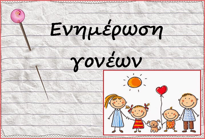 1.Ενημέρωση γονέων/ κηδεμόνων θα γίνεται κάθε πρώτη Τρίτη του μήνα και ώρα 13:05 μ.μ. (Προηγείται τηλεφωνική επικοινωνία με τη Νηπιαγωγό και ραντεβού: 2665024440,2665360515).