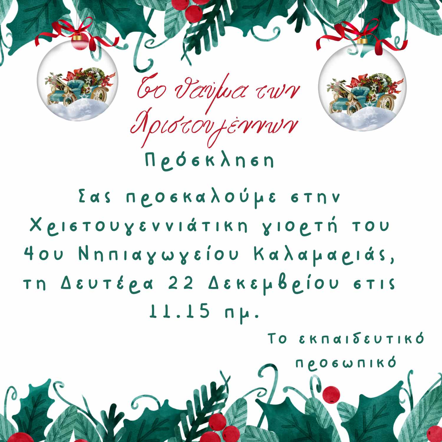 Την Τρίτη 2 Δεκεμβρίου 2025 προσήλθε ο ταχυδρόμος και πήρε τα γράμματα των παιδιών για τον Άγιο Βασίλη, στα πλαίσια συνεργασίας ΕΛΤΑ και 4ου Νηπιαγωγείου Καλαμαριάς.