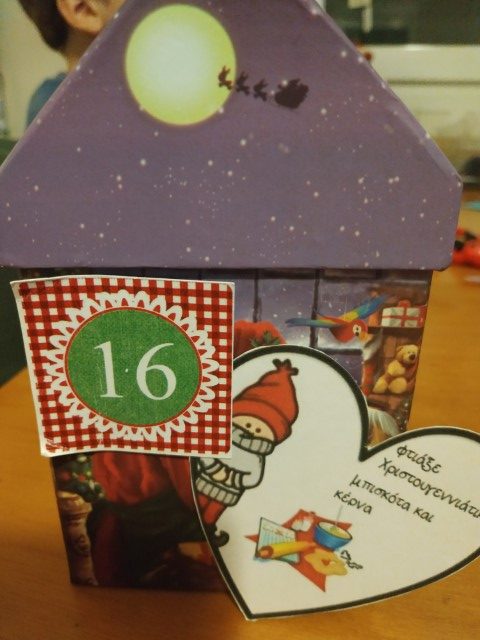 Κάθε παιδί παίρνει κάθε μέρα ένα κουτί χριστουγέννων με γλυκάκια και μία αποστολή για να την εκτελέσει! ( ο αριθμός σε κάθε κουτί δείχνει πόσες μέρες μας χωρίζουν από τα Χριστούγεννα)