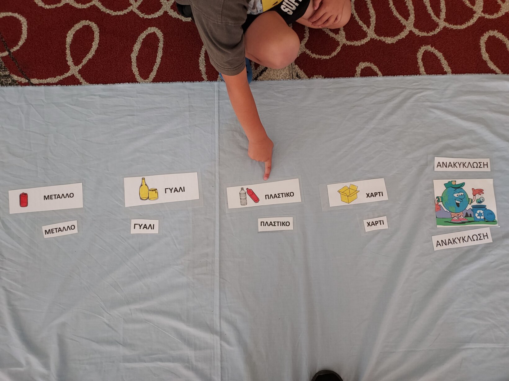Αντιστοιχίσαμε τις λέξεις πλαστικό, γυαλί, χαρτί, αλουμίνιο.