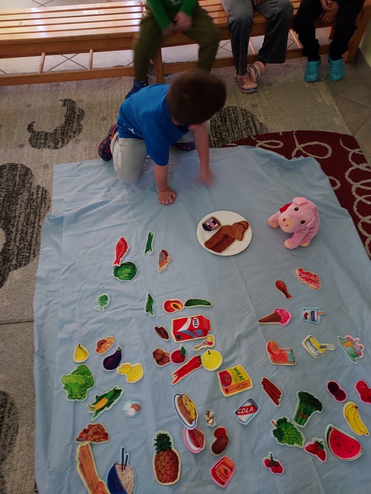 Μάθαμε την παροιμία «Το πρωί τρώγε σα βασιλιάς, το μεσημέρι σαν πρίγκιπας και το βράδυ σα ζητιάνος» Ζητήθηκε από τα παιδιά να χωριστούν σε ομάδες και να ετοιμάσουν για τον Άκη γουρουνάκη πρωϊνό, μεσημεριανό και βραδινό χρησιμοποιώντας εικόνες τροφών.