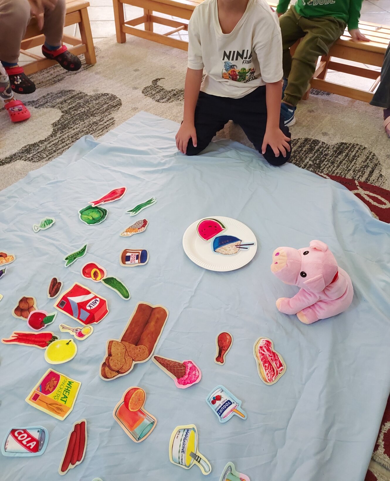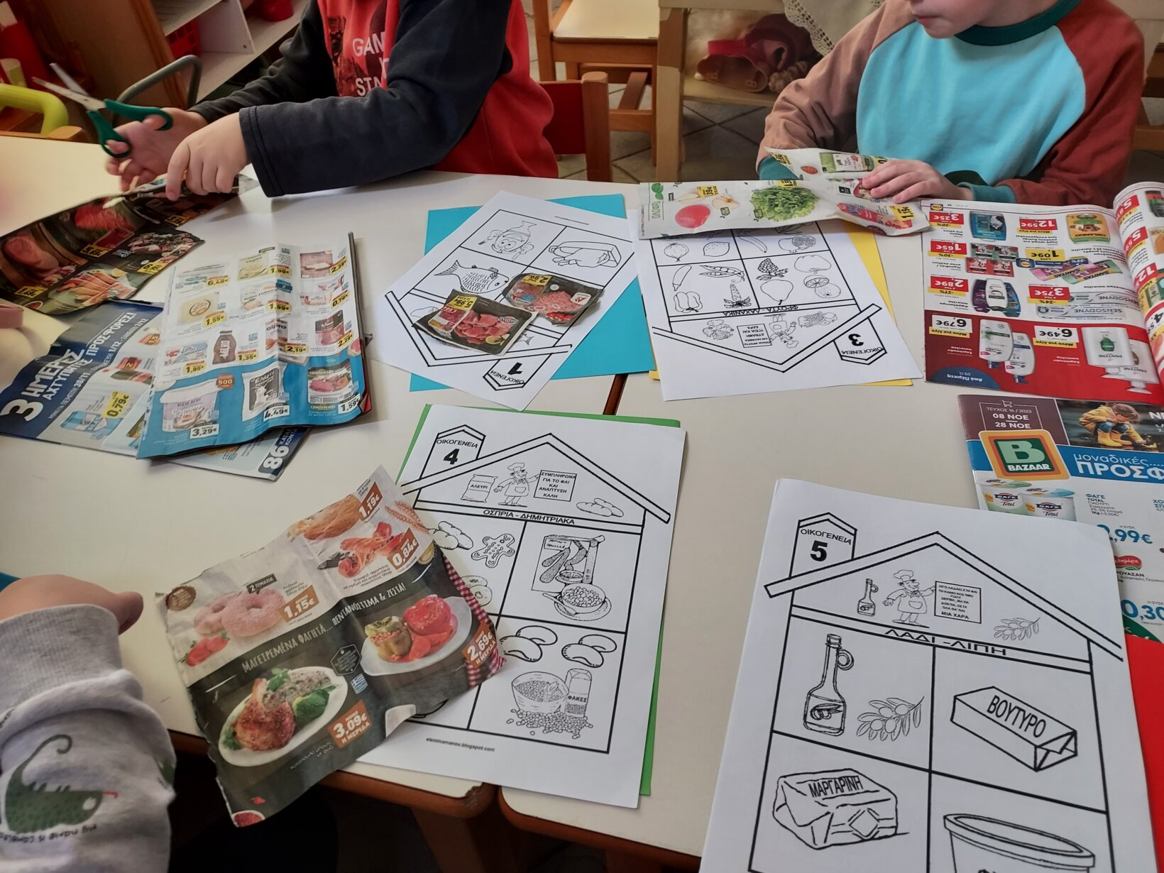 Προκειμένου να διερευνηθούν οι προϋπάρχουσες γνώσεις και συνήθειες των παιδιών σχετικά με την υγιεινή διατροφή διαμόρφωσαν τα πιάτα τους με τροφές που επέλεξαν από εικόνες σε κάρτες.
