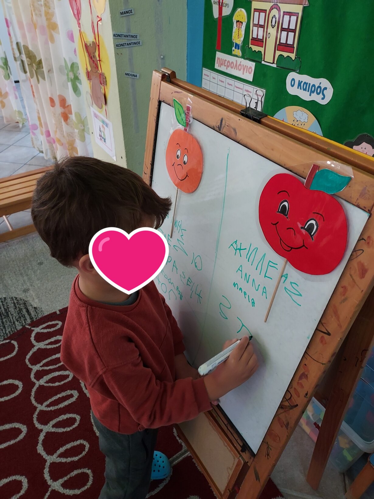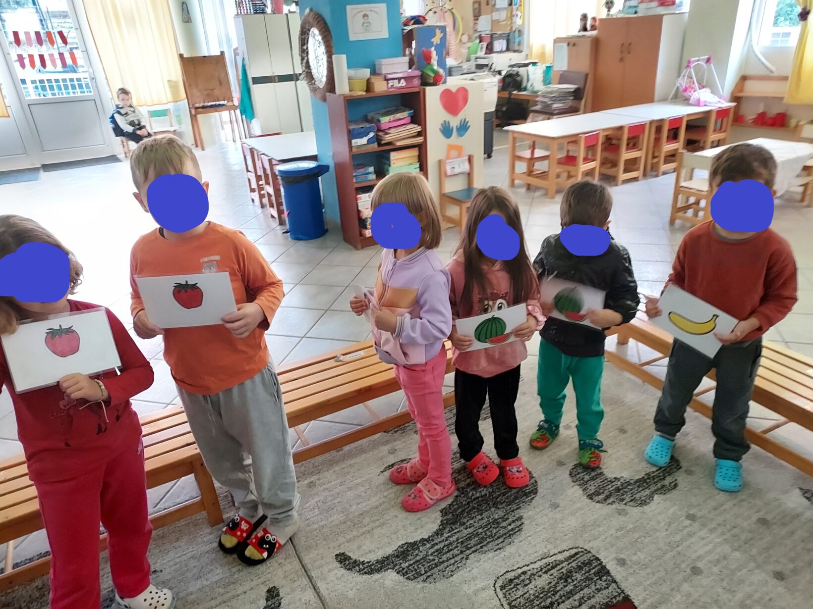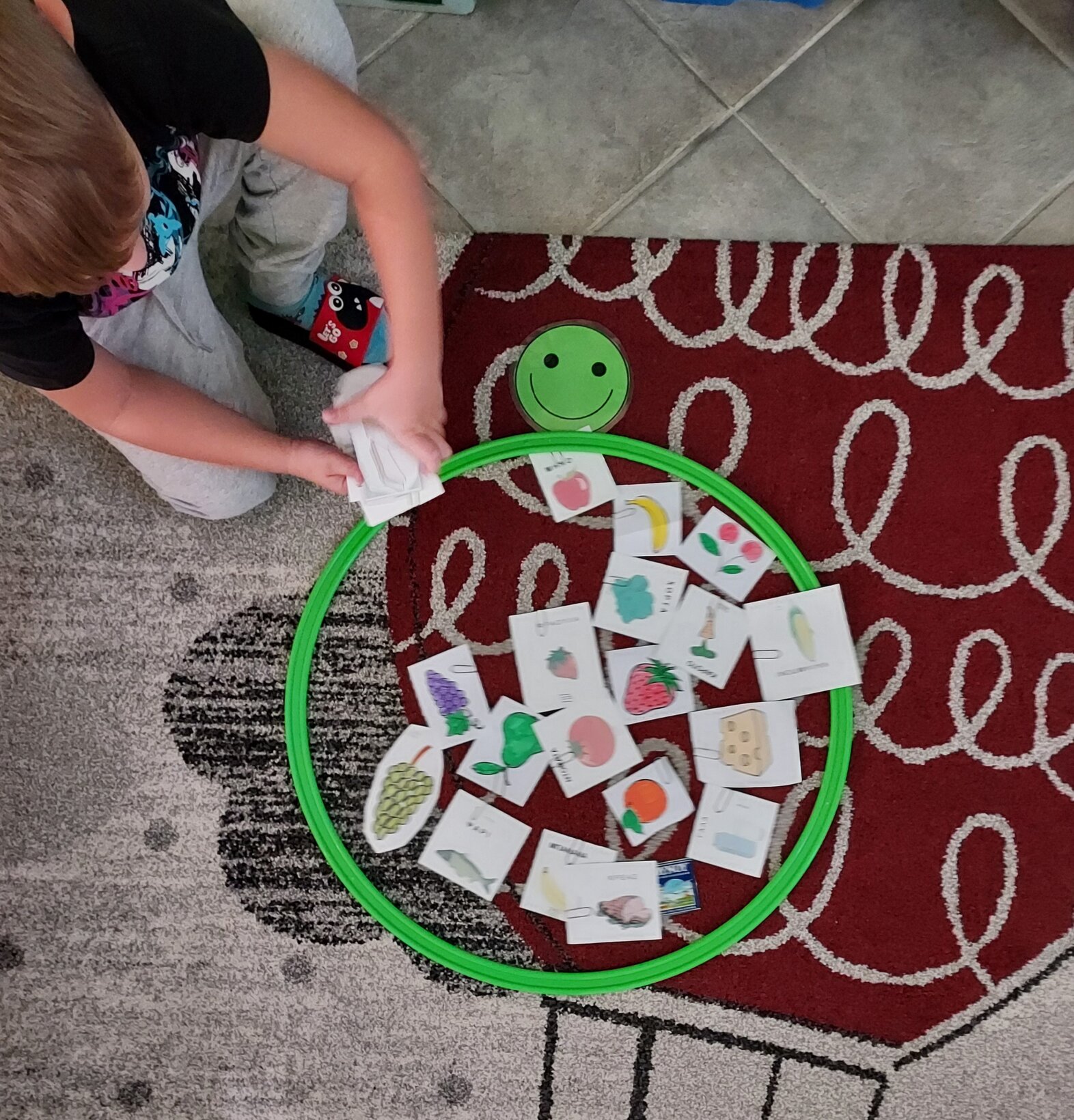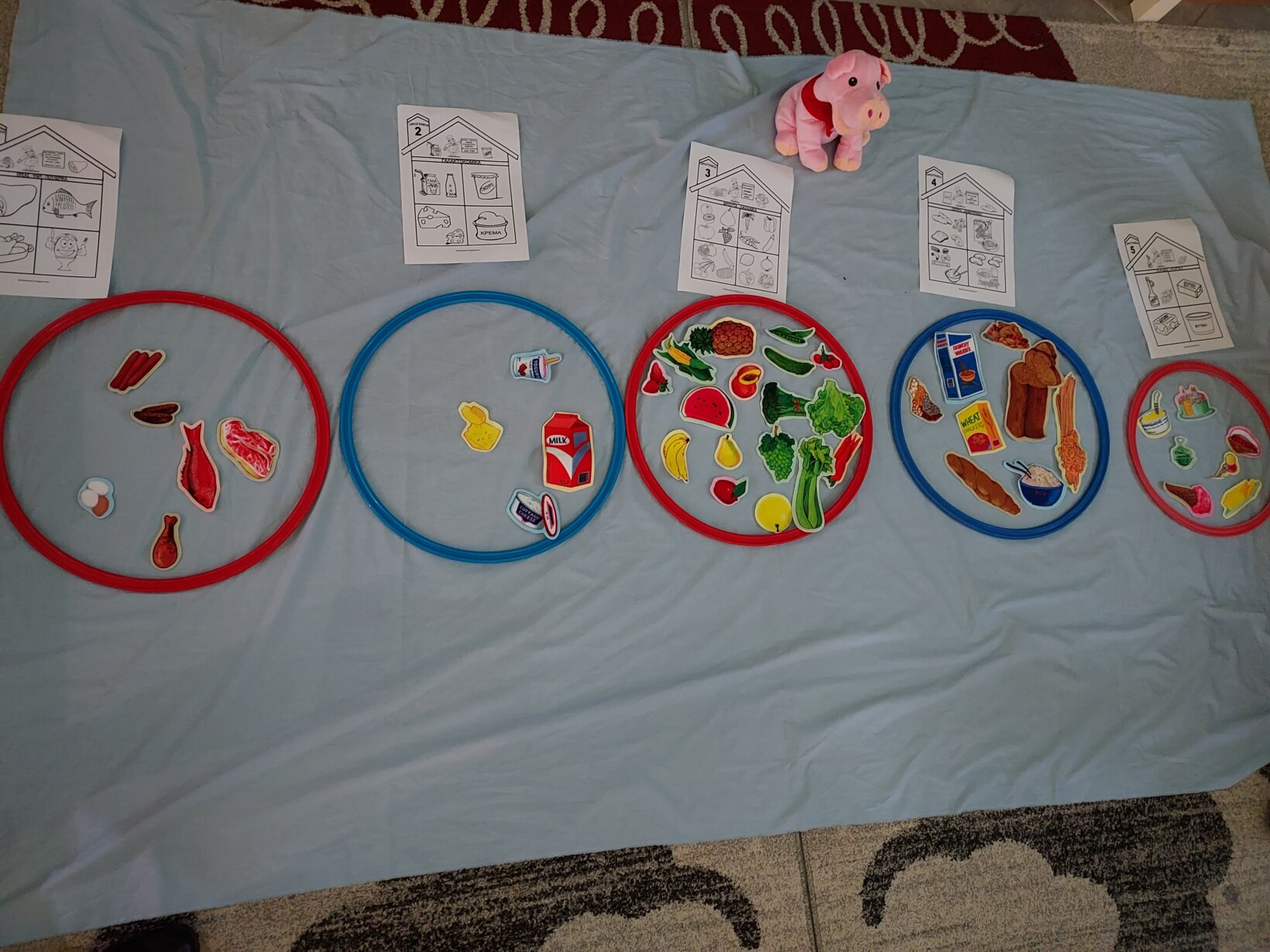 Παίξαμε το ακόλουθο παιχνίδι κάθε παιδί ψάρευε με μαγνητικό καλάμι εικόνες τροφών και τις τοποθετούσε ανάλογα σε κόκκινο στεφάνι αν ήταν ανθυγιεινές και στο πράσινο αν ήταν υγιεινές