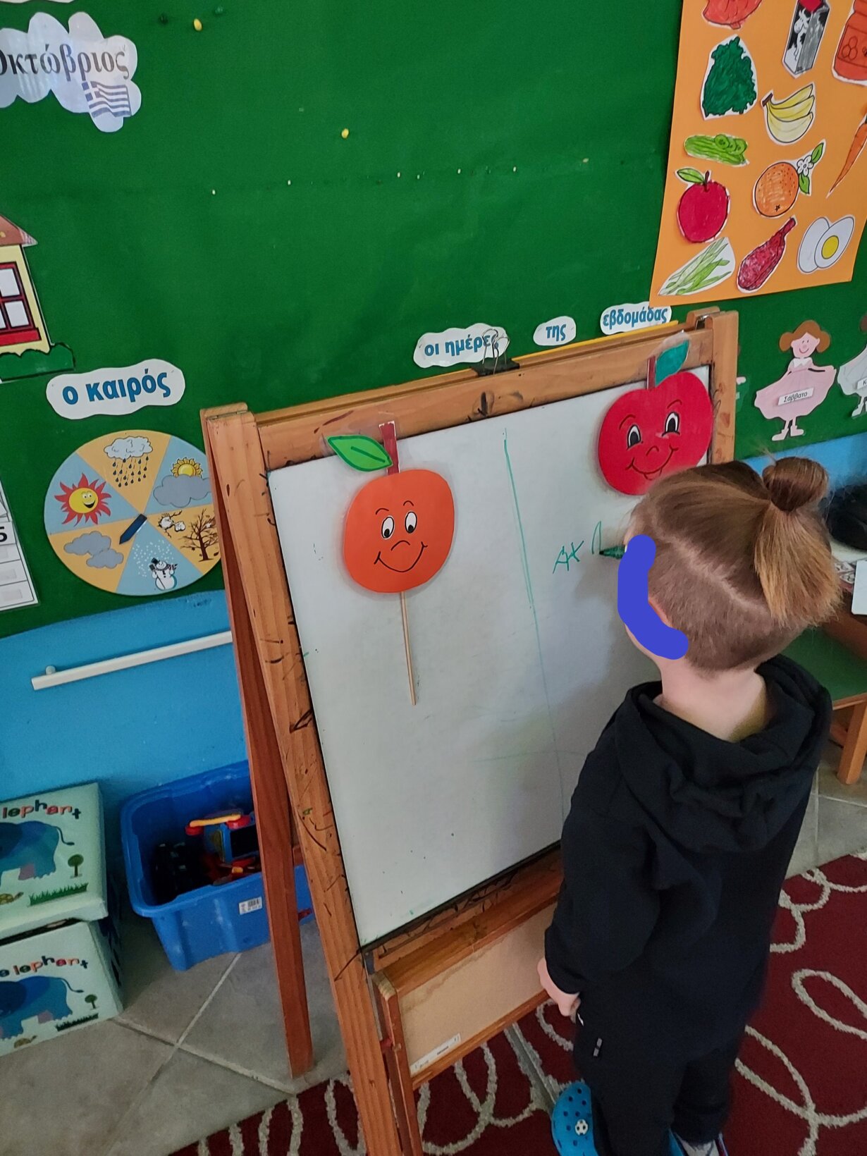Μια κούκλα ήρθε στην τάξη μας , μας συστήθηκε ήταν ο Άκης γουρουνάκης, συζήτησε με τα παιδιά το πρόβλημα του πως έχει δηλαδή θέμα με τα κιλά του και ψάχνει λύση και στο δρόμο του βρήκε ένα βιβλίο που μπορεί να βοηθήσει έτσι μας διάβασε το παραμύθι «Η κυρά Διατροφή πρώτη στη Μαγειρική» της Λητούς Τσακίρη Παπαθανασίου. Τα παιδιά συζήτησαν με τον Άκη για τις τροφές που τρώει κι εκείνος ρώτησε τα παιδιά για τα δικά τους αγαπημένα φαγητά.