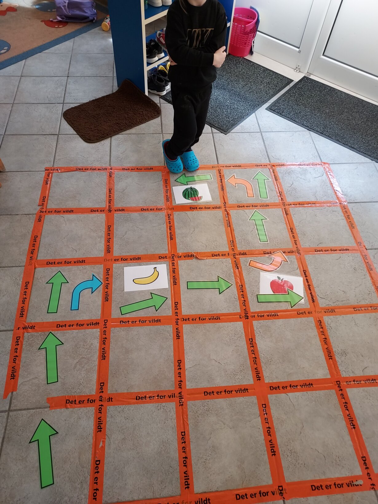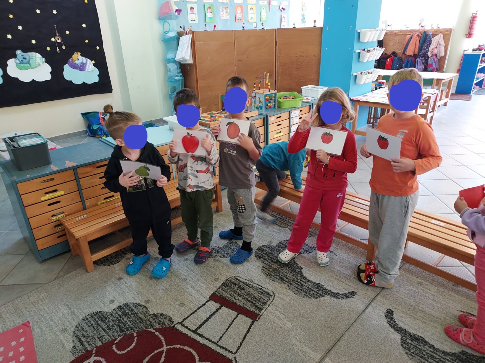 Τα νήπια δημιούργησαν ειδικά σχεδιασμένη πίστα (πλέγμα) και χωρίστηκαν σε τρεις ομάδες. Η κάθε ομάδα δημιούργησε ένα σενάριο με τρόφιμα (π.χ. φρούτα, όσπρια κλπ) και ενεπλάκησαν σε δραστηριότητες κώδικα και προγραμματισμού :