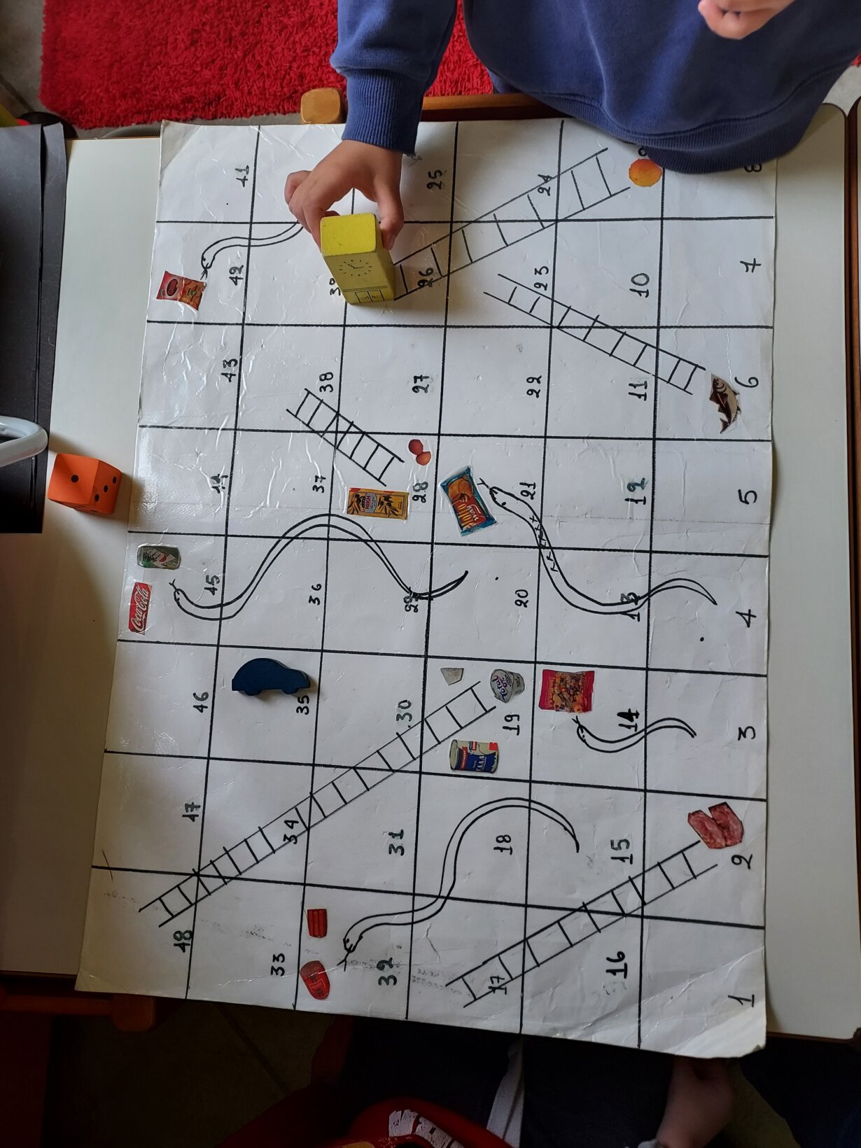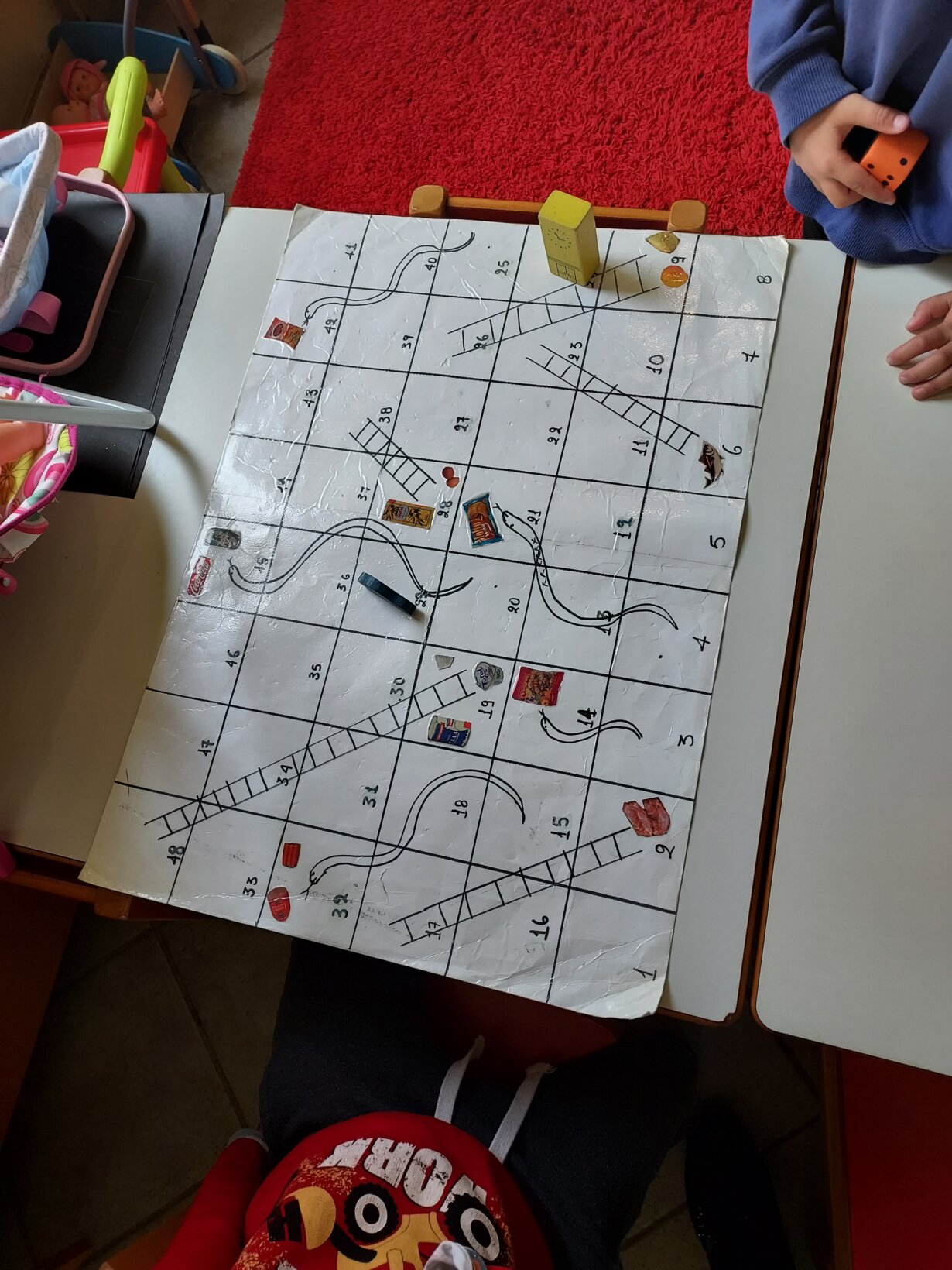Τέλος τα παιδιά έπαιξαν επιτραπέζιο παιχνίδι Το φιδάκι όπου όταν συναντούσαν υγιεινές τροφές ανέβαιναν σκάλα κι όταν συναντούσαν ανθυγιεινές το φιδάκι τους οδηγούσε στην ουρά του