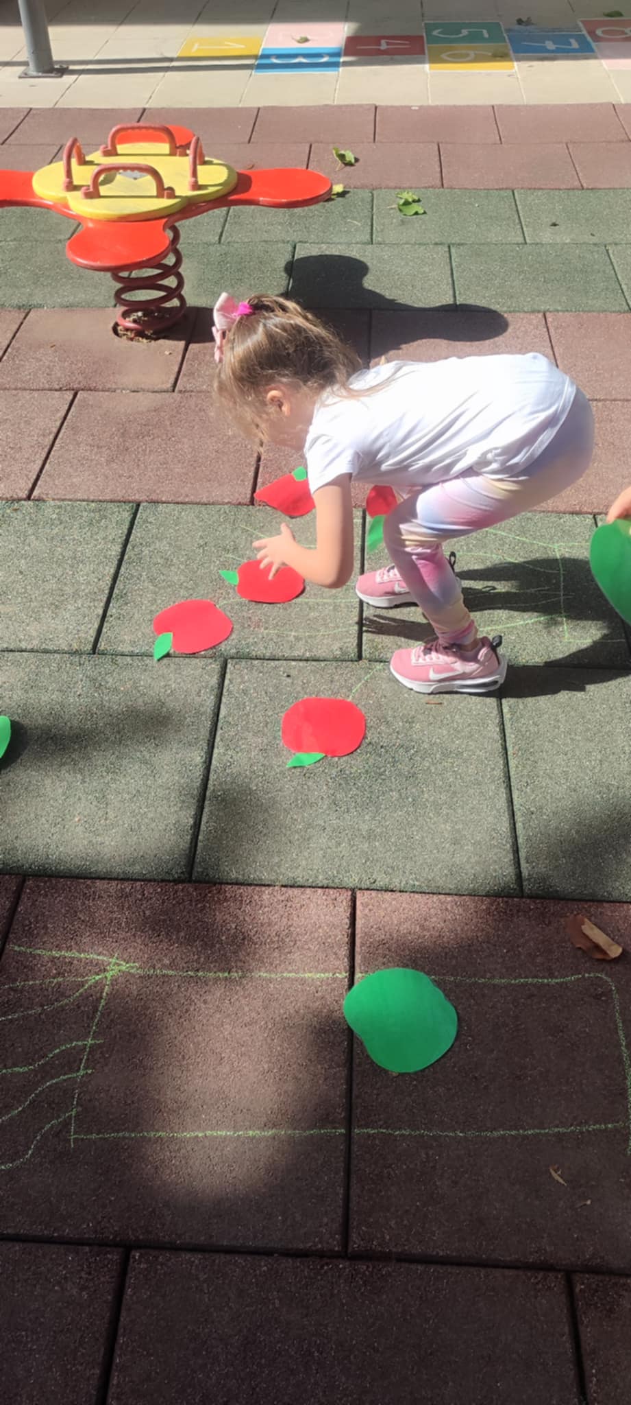 Συζητώντας με τα παιδιά για τα φρούτα του φθινοπώρου, εστιάσαμε στο αγαπημένο φρούτο που ψήφισε η τάξη μας , και αυτό είναι το μήλο. Σχεδιάσαμε κόκκινα και πράσινα μήλα στην αυλή του σχολείου, ταξινομήσαμε τα μήλα ανάλογα με το χρώμα τους στα αυτοσχέδια δέντρα που σχεδιάσαμε στο δάπεδο. Φτιάξαμε λαχταριστά μηλοπιτάκια και μάθαμε όλα τα υλικά που χρειαζόμαστε για να ολοκληρώσουμε την συνταγή.