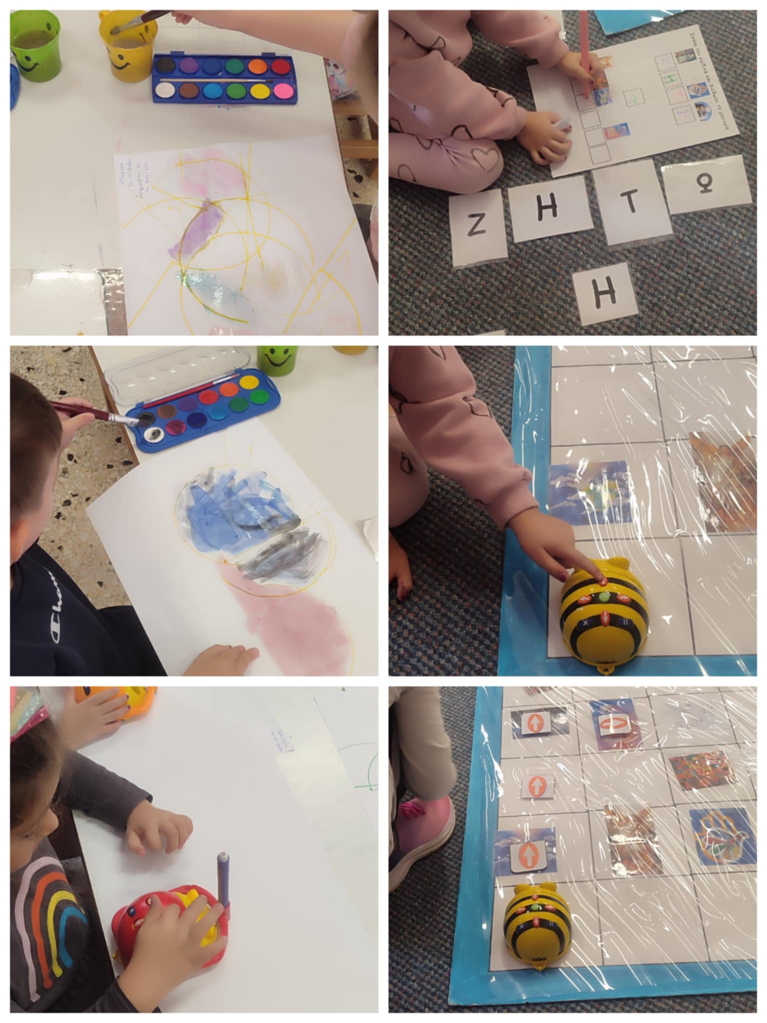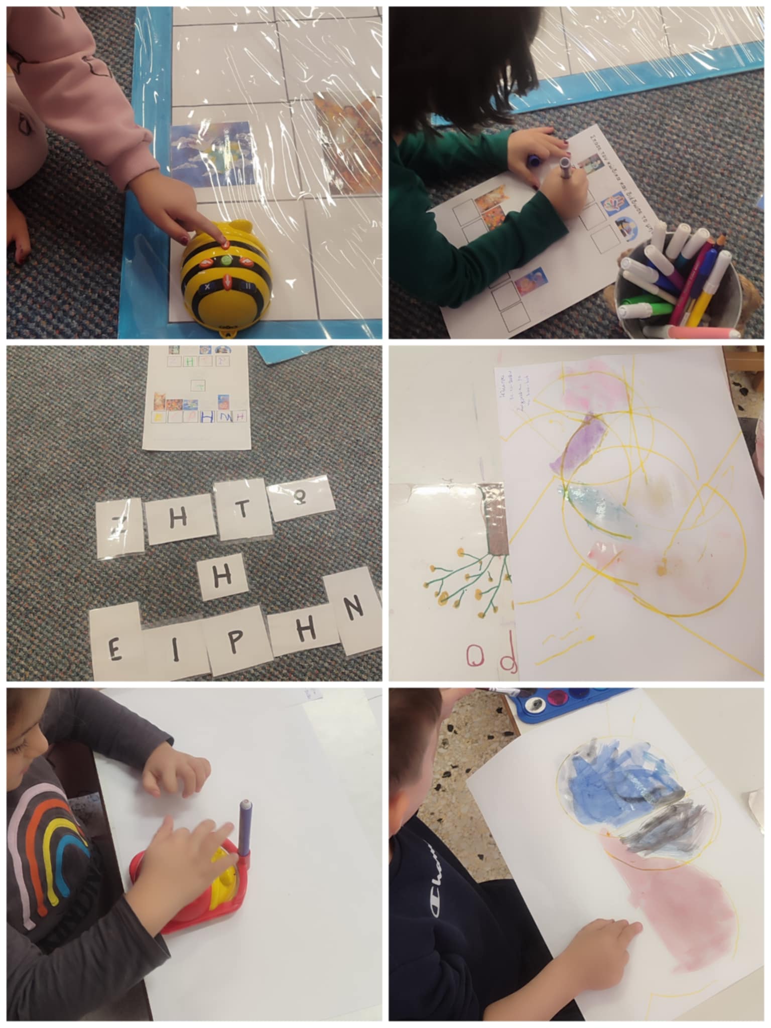 Στα πλαίσια της Ευρωπαικής εβδομάδας κώδικα οι μαθητές του δεύτερου τμήματος γνώρισαν το bee-bot( μελισσάκι ρομπότ), έμαθαν τις λειτουργίες χρήσης τους αλλά και τις εντολές που πρέπει να του δίνουν προκειμένου να φτάνει στο σημείο που επιθυμούν την εκάστοτε φορά. Στόχος της φετινής δράσης ήταν να συλλέξει το ρομποτάκι με την βοήθεια των παιδιών τα έργα ζωγράφων που απεικονίζουν έικόνες Ειρήνης. Κάθε εικόνα είχε απο πίσω ένα γράμμα,που όταν τα συνέθετες όλα μαζί αποκαλύπτεται το σύνθημα. Τα παιδιά κατάφεραν να σπάσουν τον κώδικα και να αποκαλυφθεί το σύνθημα ΖΗΤΩ Η ΕΙΡΗΝΗ!!!