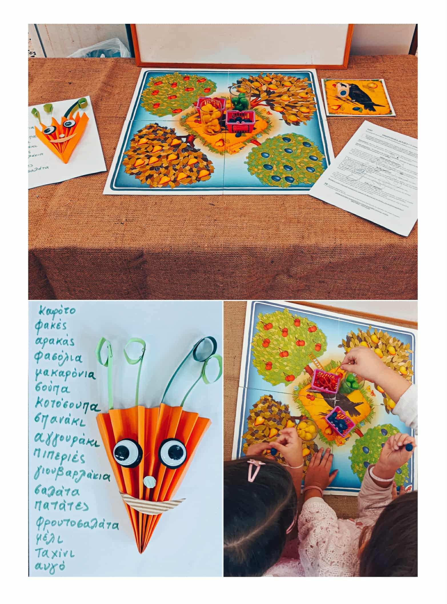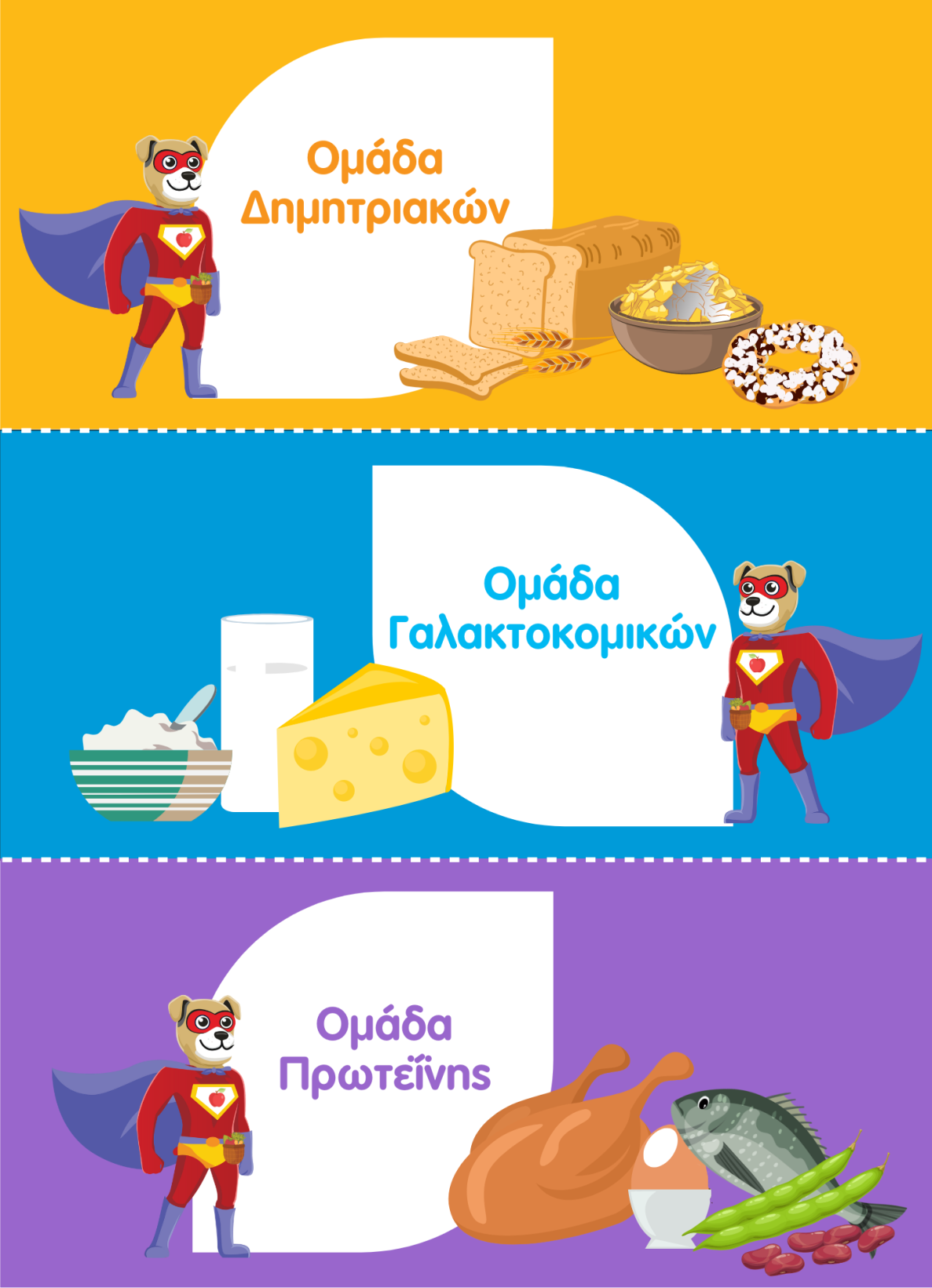 1. Συζήτηση με τους μαθητές/μαθήτριες για το τι γράφει η κάθε καρτέλα και για τις ομάδες τροφίμων.