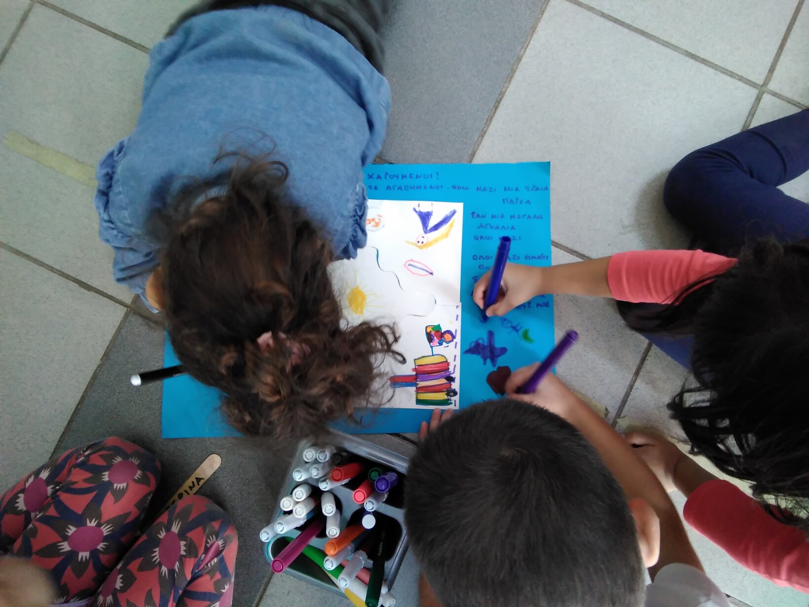 Ξεκίνησε η υλοποίηση του Εργαστηρίου Δεξιοτήτων από τον θεματικό κύκλο Ζω καλύτερα-Ευ ζην με τίτλο «Ενδυνάμωση-Συνεργασία-Αποδοχή. Προλαβαίνουμε τη βία πριν εμφανιστεί». Το πρώτο εργαστήριο του προγράμματος που έχει τίτλο “Ένας κύκλος μας ενώνει” επικεντρώνεται στην γνωριμία των παιδιών μεταξύ τους και στην αναγνώριση των κοινών τους χαρακτηριστικών. Στον κύκλο, την παρεούλα μας, τα παιδιά συζήτησαν και εντόπισαν κοινά χαρακτηριστικά αλλά και διαφορές, παρουσίασαν τον εαυτό τους λέγοντας το όνομα τους και το αγαπημένο παιχνίδι και χρώμα, με τη βοήθεια ενός νήματος κουβαριού το κάθε παιδί έδωσε το νήμα σε άλλο παιδί με το οποίο είχαν κάποιο κοινό χαρακτηριστικό και βάση ένα κοινό τους χαρακτηριστικό, το αγαπημένο χρώμα, χωρίστηκαν σε ομάδες και συν-δημιούργησαν.