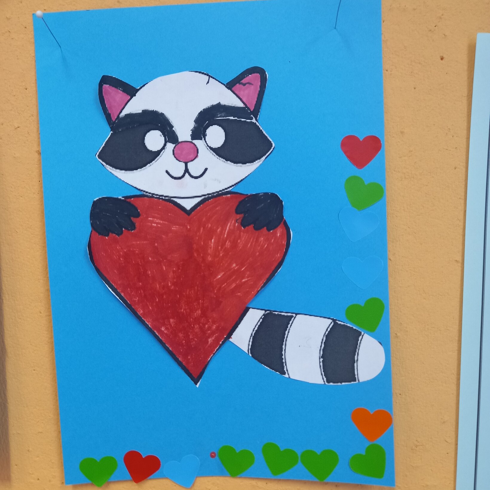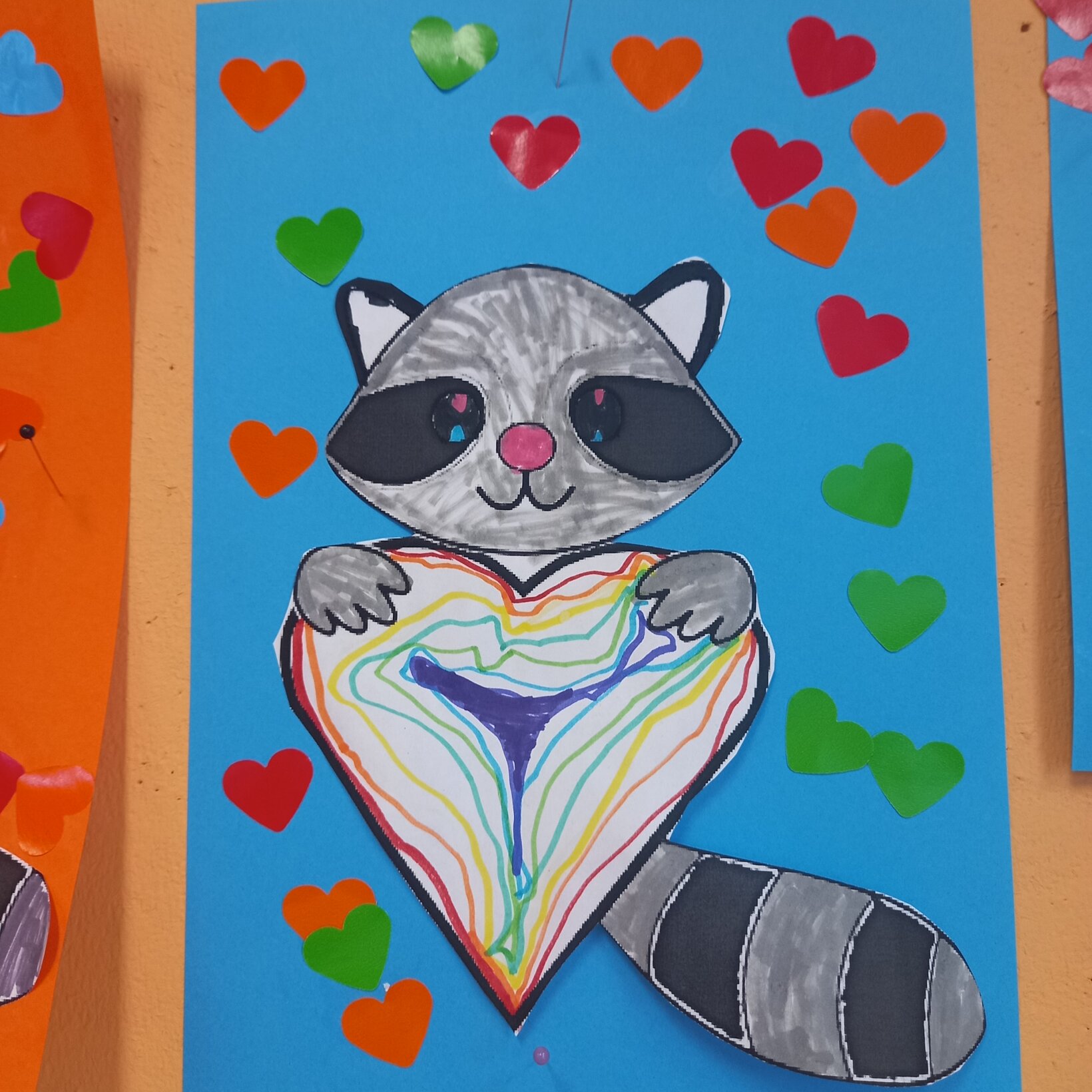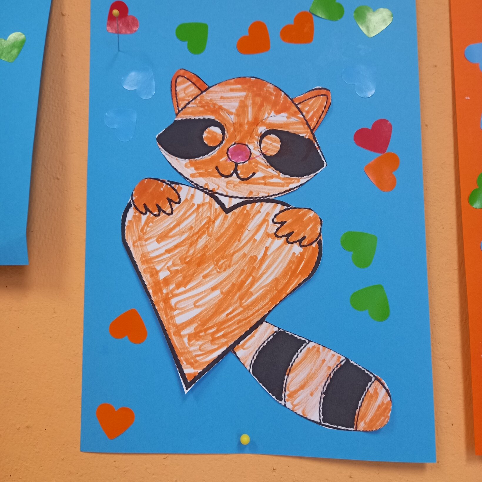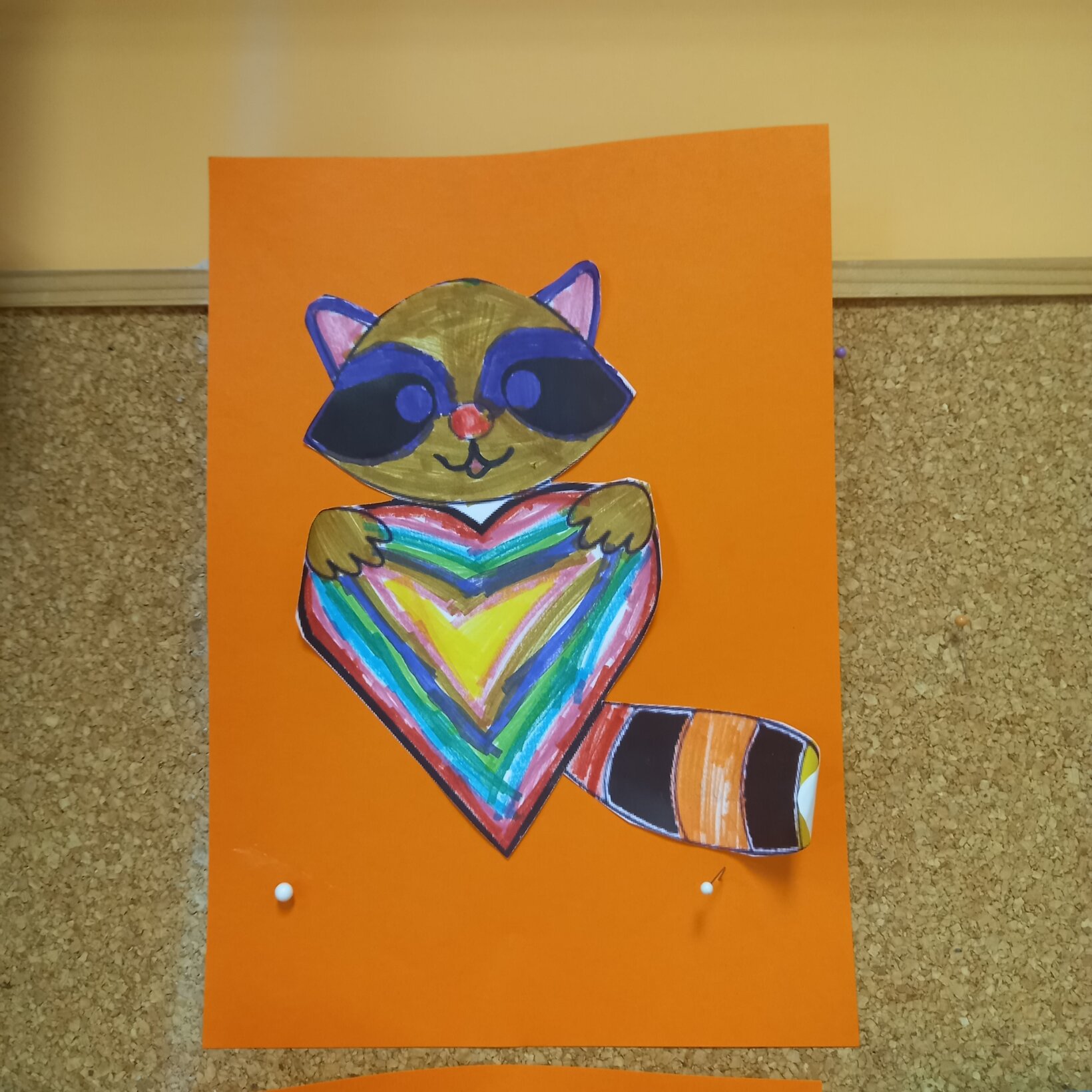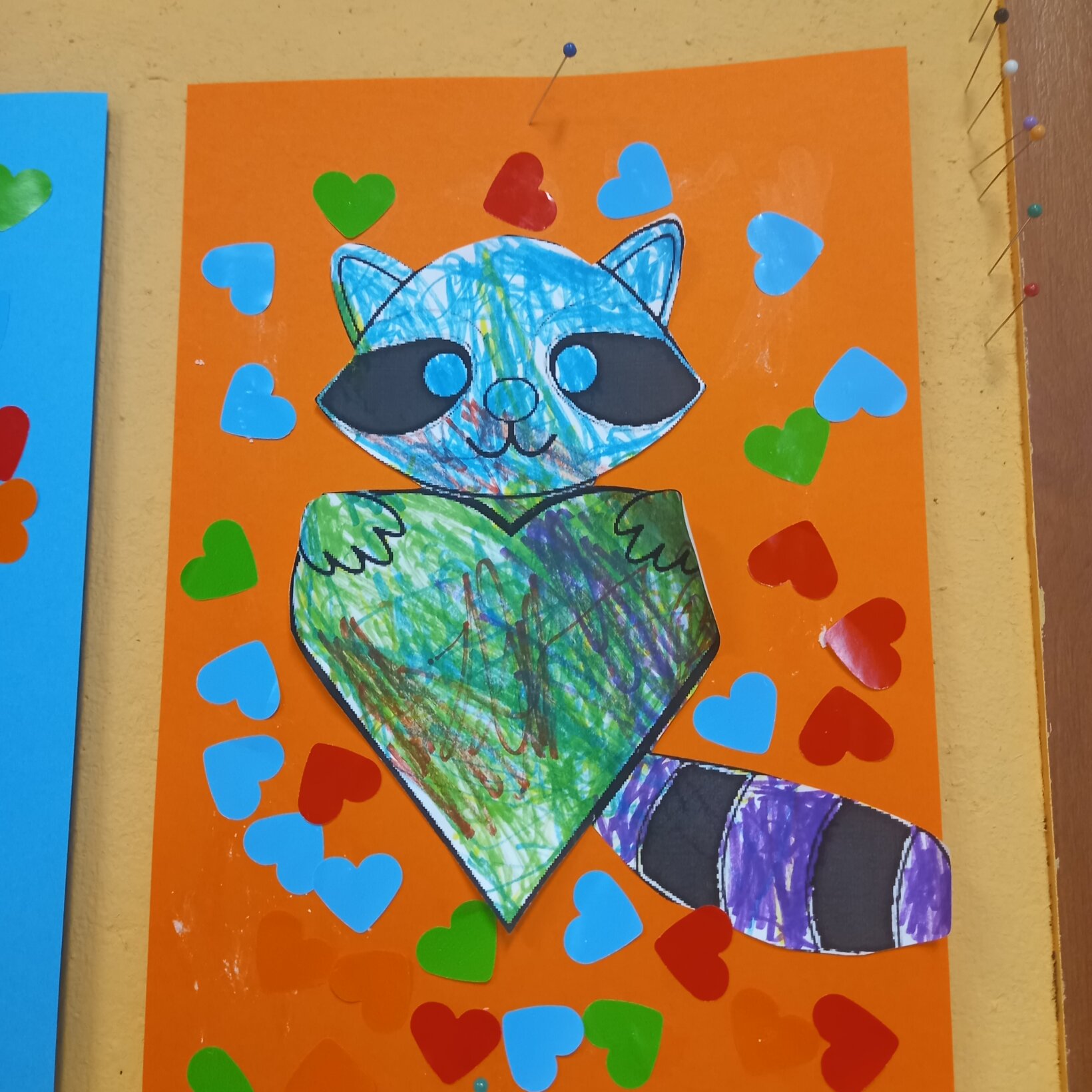 Ζωγραφίσαμε τον ήρωα , το μικρό ρακούν με το όνομα Τσέστερ κ μαθαίνοντας να χρησιμοποιούμε σωστά τους μαρκαδόρους και του κολλήσαμε φιλάκια μαθαίνοντας να χρησιμοποιούμε την κόλλα μας.