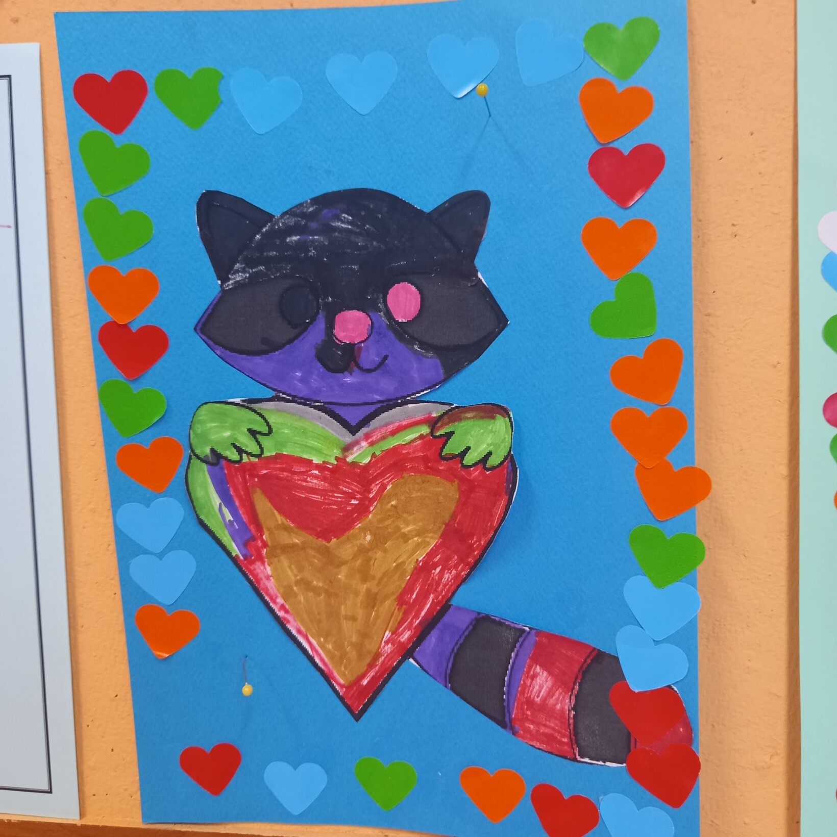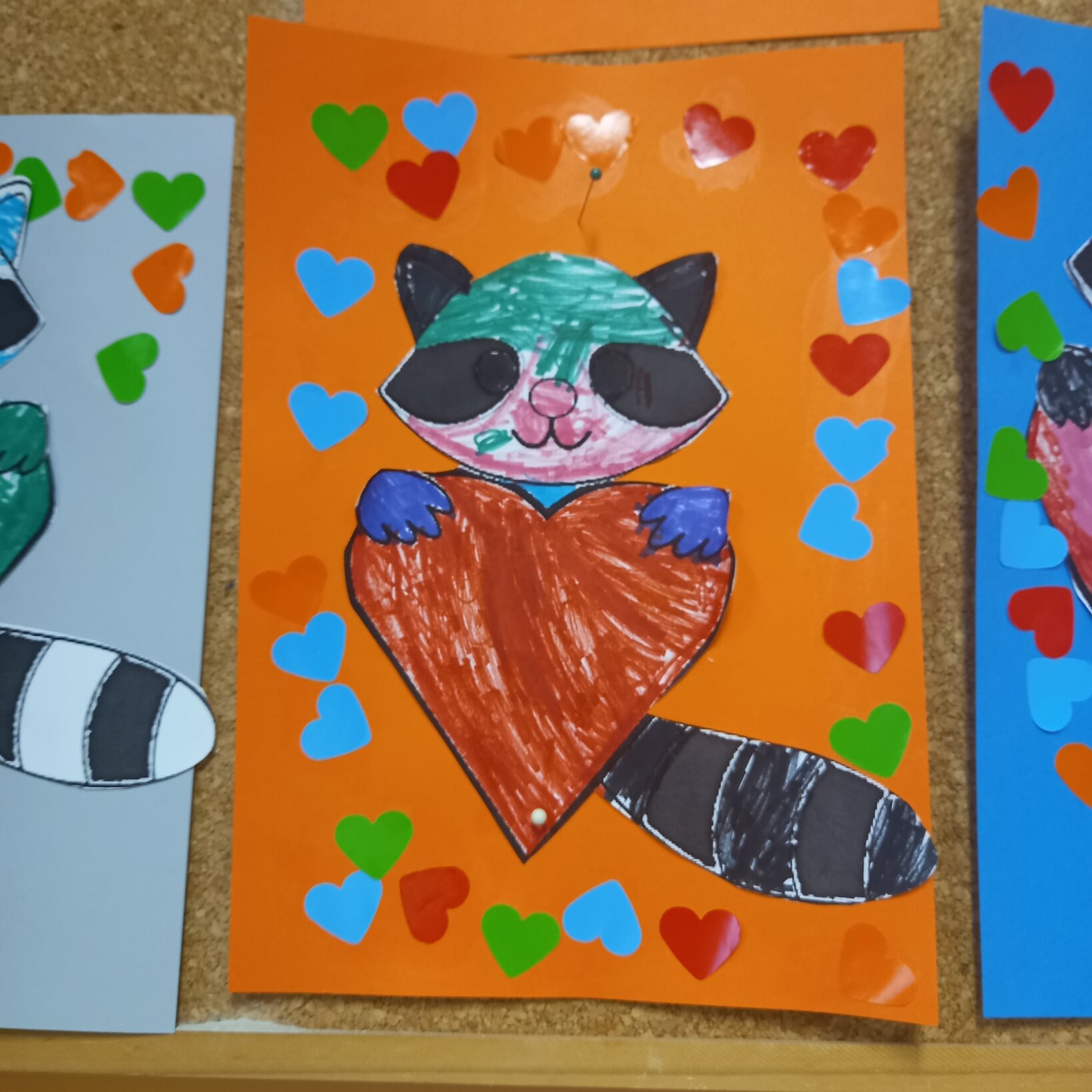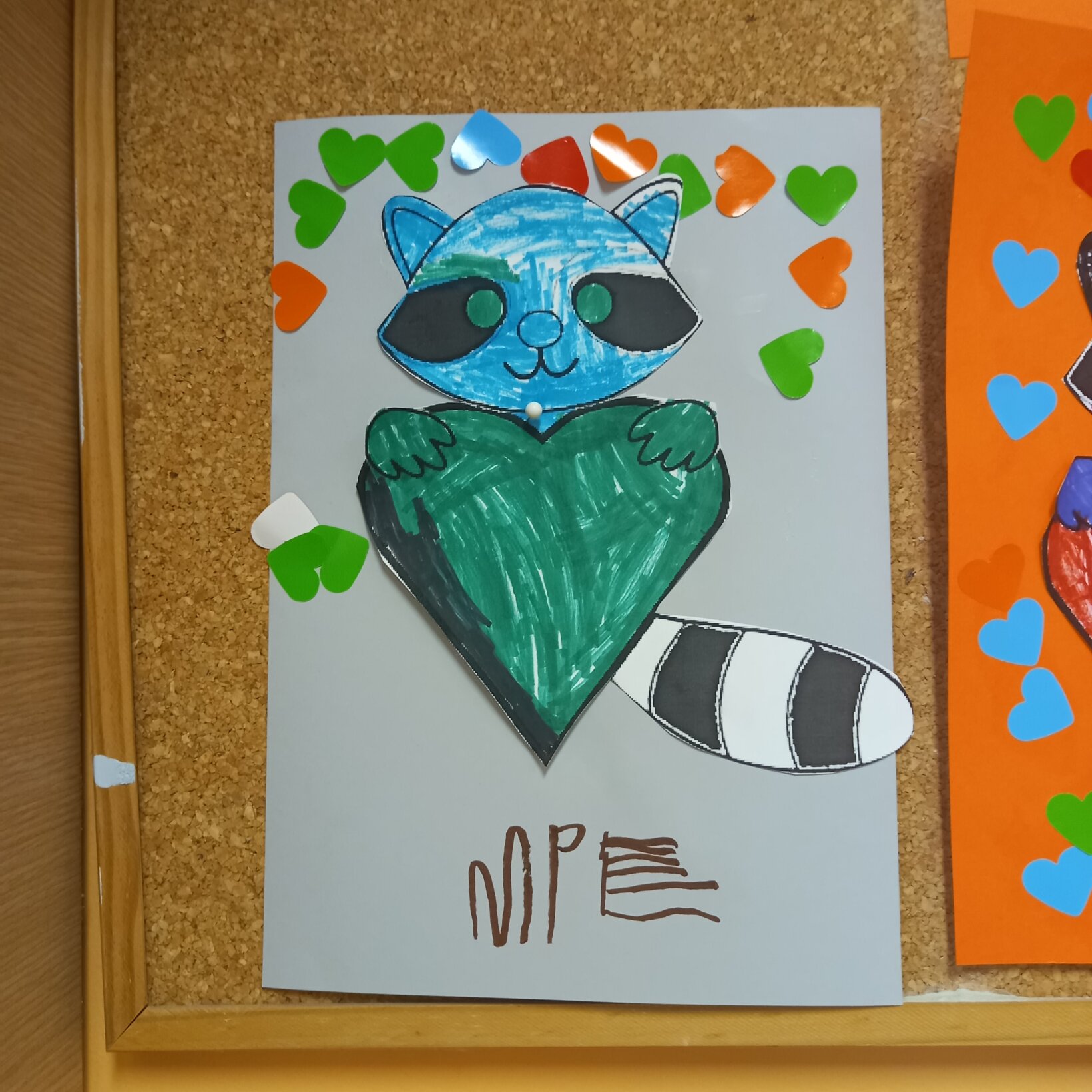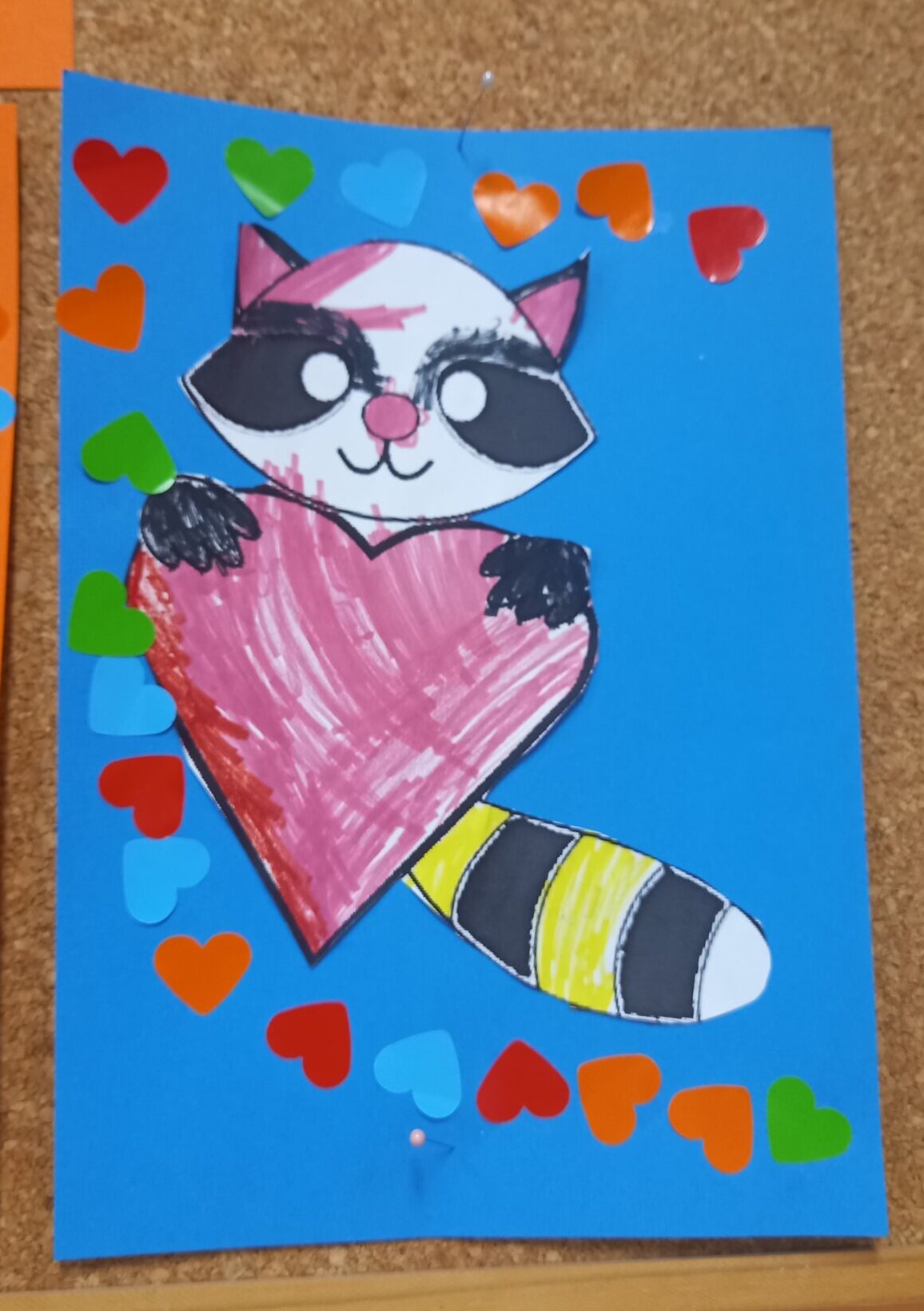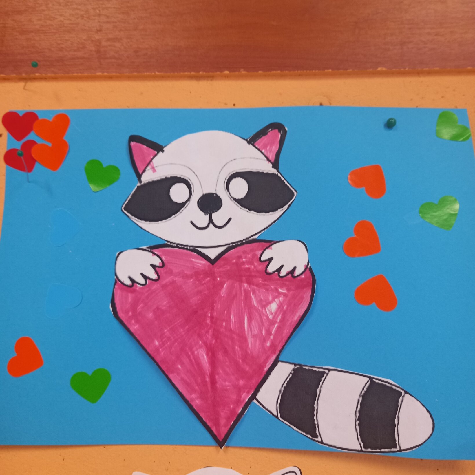 Ζωγραφίσαμε τον ήρωα , το μικρό ρακούν με το όνομα Τσέστερ κ μαθαίνοντας να χρησιμοποιούμε σωστά τους μαρκαδόρους και του κολλήσαμε φιλάκια μαθαίνοντας να χρησιμοποιούμε την κόλλα μας.