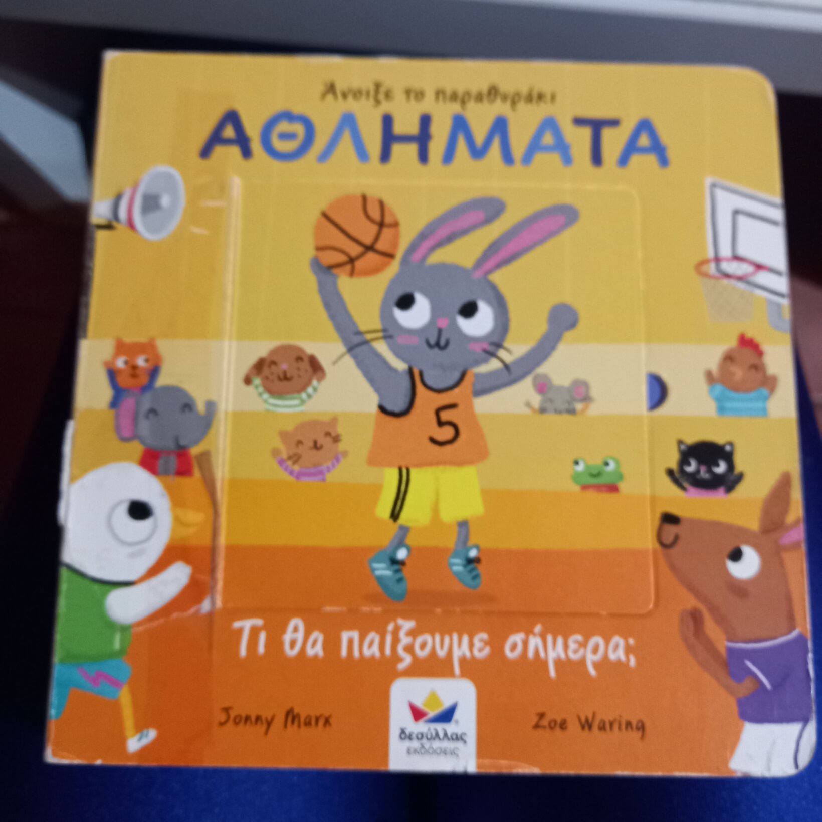 Μετά τα αθλητικά παιχνίδια… κουραστήκαμε ! Για να χαλαρώσουμε διαβάσαμε το βιβλίο ¨Αθλήματα¨ των εκδόσεων Δεσύλλα , γνωρίσαμε τα αθλήματα, εμπλουτίσαμε το λεξιλόγιό μας με νέες λέξεις και μιλήσαμε για το δικό μας αγαπημένο άθλημα.