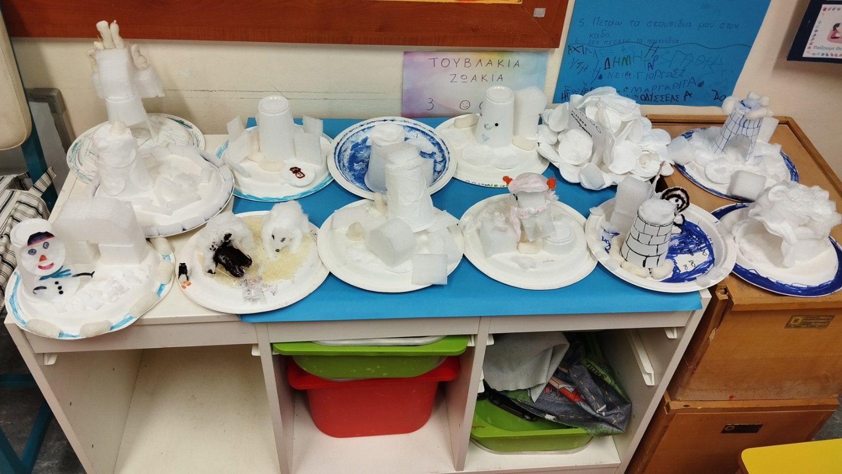 Τον Ιανουάριο φέραμε το “χιόνι” στην τάξη μας, μιας και δε μας επισκέφθηκε το αληθινό. Γενικότερα, μιλήσαμε για τον κύκλο του νερού κ τις ιδιότητές του, παίξαμε και πειραματιστηκαμε.