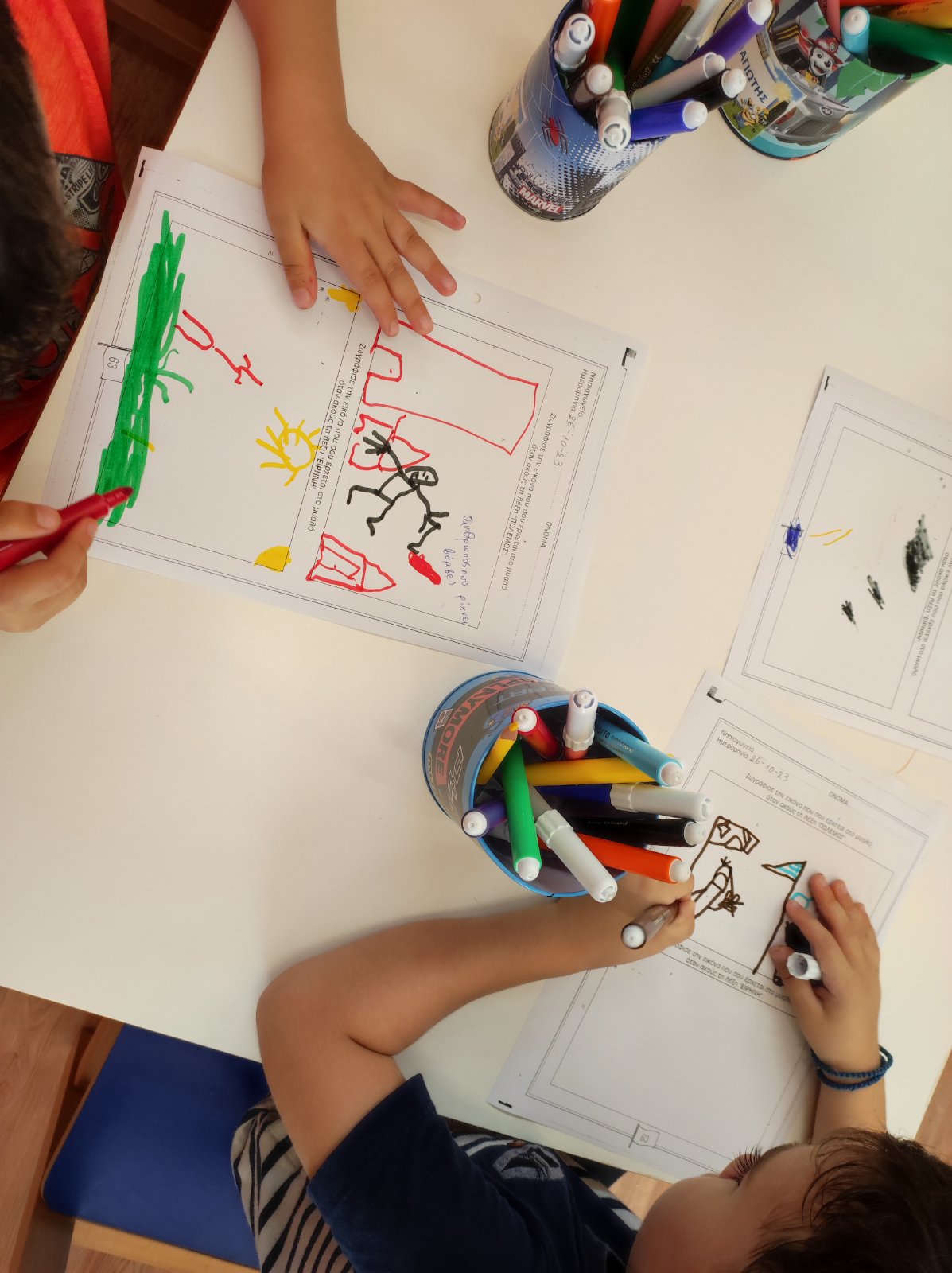 Με αφορμή τα προσωπικά βιώματα των παιδιών αναφορικά με τη συγκομιδή της ελιάς, τα παδιά παρακολούθησαν εκπαιδευτικά videos, επεξεργάστηκαν εποπτικό υλικό και έκαναν κατασκευές. Αυτό είχε ως αποτέλεσμα την οικοδόμηση της νέας γνώσης και τον εμπλουτισμό του λεξιλογίου των μαθητών/τριών.