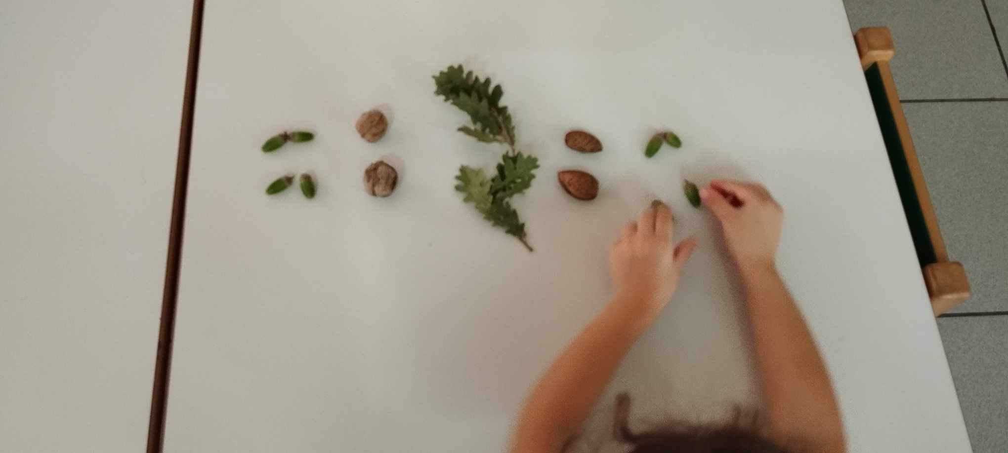 Μετά από συζήτηση αποφάσισαν, να ετοιμάσουν το φαγητό του σκίουρου, χρησιμοποιώντας φυσικούς καρπούς (καρύδια, αμύγδαλα, βελανίδια, φύλλα) με τη μορφή ακολουθίας. Στη συνέχεια τα παιδιά προσπάθησαν να αναπαράγουν την ακολουθία (μοτίβα).