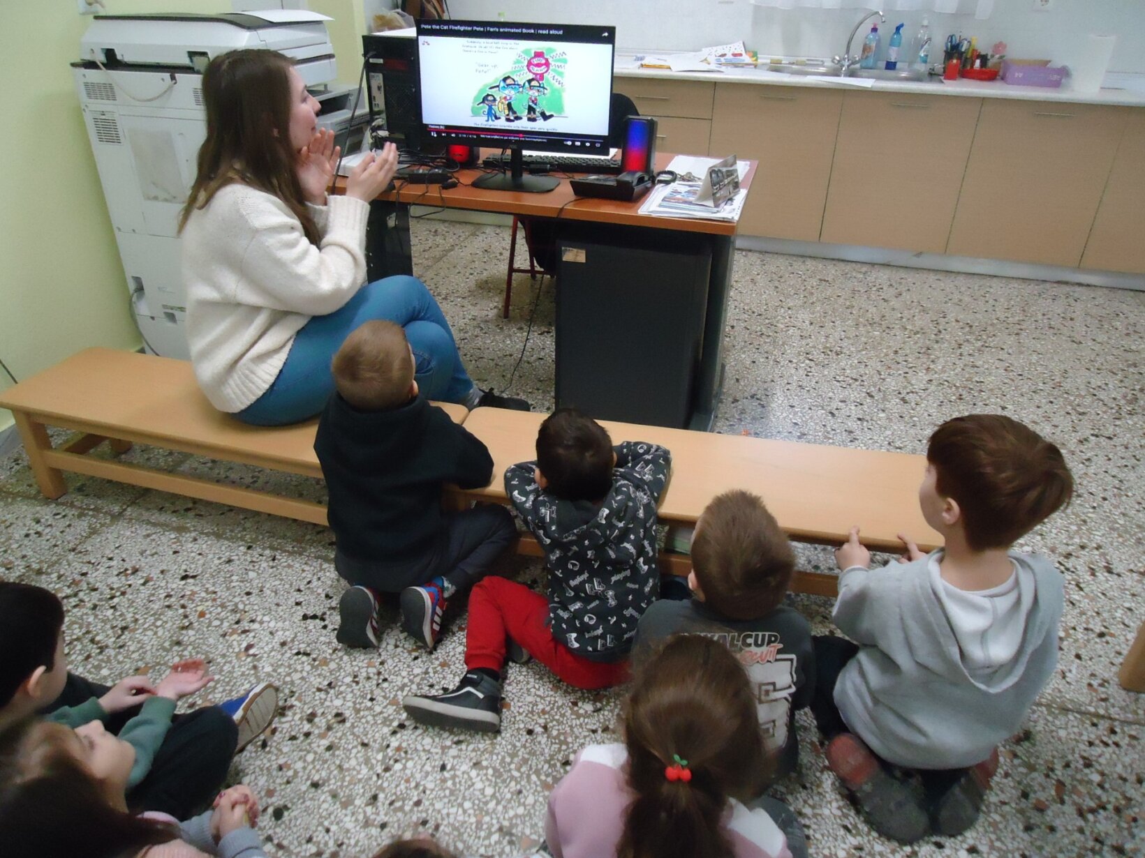 Οι ομάδες συζητούν τι βλέπουν και πώς η εικόνα συνδέεται με τις ιστορίες που μοιράστηκαν πριν λίγο.