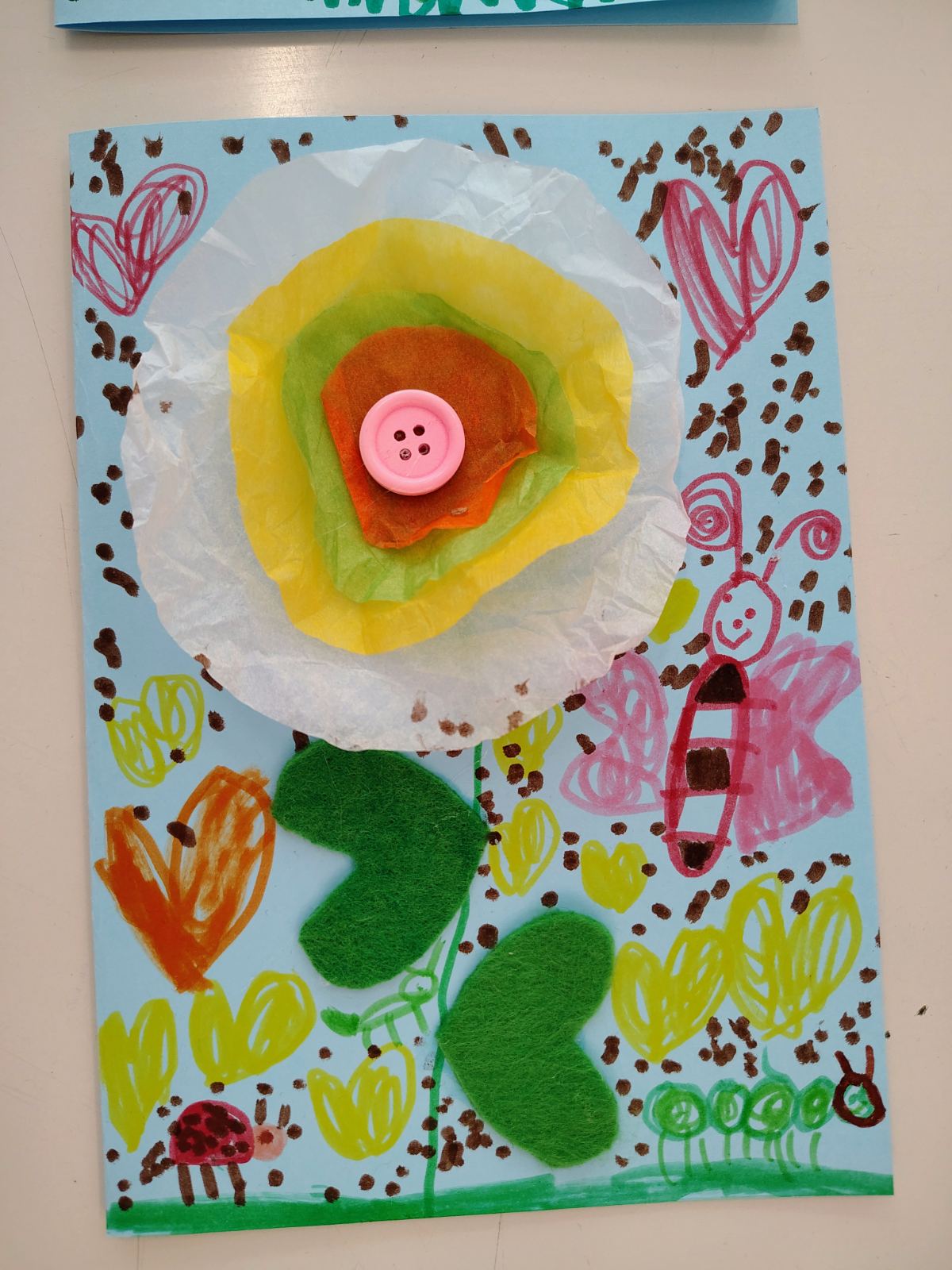 Στα πλαίσια του σχεδίου δράσης της σχολικής μονάδας με τίτλο: “Χρωματίζοντας πράσινο το σχολείο μου” ασχοληθήκαμε με δεξιότητες ζωγραφικής και την καλλιέργεια της αισθητικής αντίληψης των μαθητών. Χρησιμοποιώντας τη φαντασία και διαφορετικά υλικά, τα παιδιά δημιούργησαν διάφορες εικαστικές δημιουργίες με θέμα τα λουλούδια. Διέκριναν χρώματα, είδη γραμμών και σχημάτων στο περιβάλλον και στα έργα τέχνης.