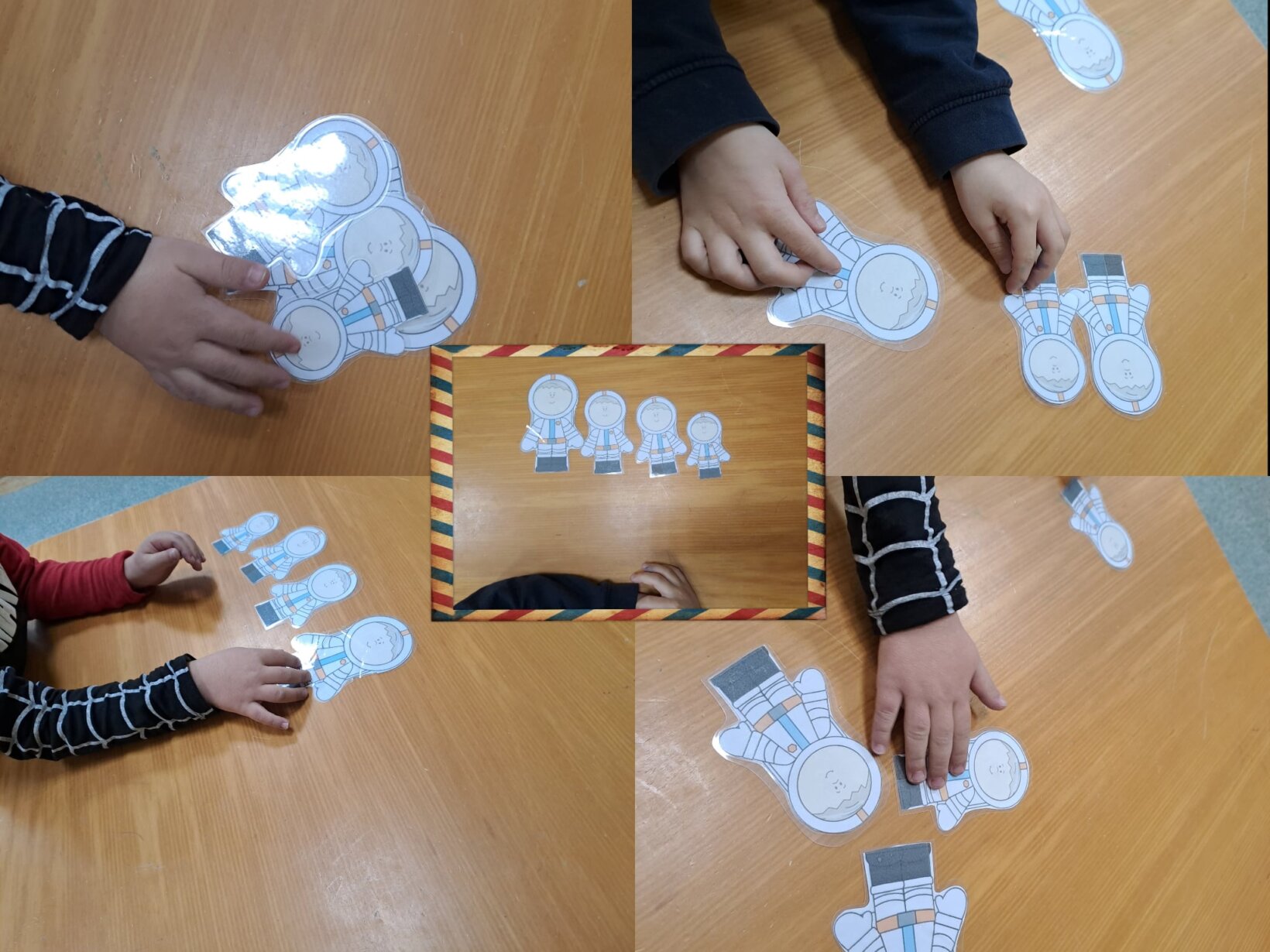 Αυτήν την εβδομάδα ξεκίνησε το ταξίδι μας στο διάστημα. Ανάγνωση εκπαιδευτικού βιβλίου με εικόνες και πληροφορίες για τους πλανήτες καθώς και του βιβλίου “Βρισκόμαστε εδώ”. Συζήτηση με τα παιδιά για τον ποιον πλανήτη αγαπούν περισσότερο. Προβολή εκπαιδευτικού βίντεο με τους πλανήτες και δημιουργία ατομικού κάδρου με το ηλιακό μας σύστημα. Φύλλα εργασίας, όπως κόβω και κολλάω από τον πιο μικρό στον πιο μεγάλο αστροναύτη, σταυρόλεξο με τους πλανήτες, καταμετρώ και χρωματίζω τον σωστό αριθμό και κατασκευή του πυραύλου μας για να απογειωθούμε.