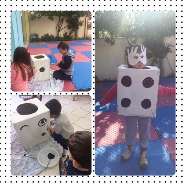 Τα παιδιά έφτιαξαν μια αποκριάτικη στολή ζάρι από χαρτόκουτο και