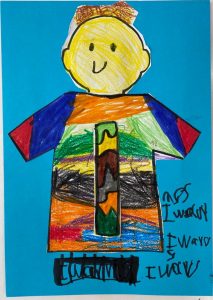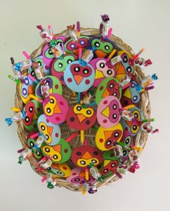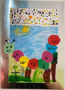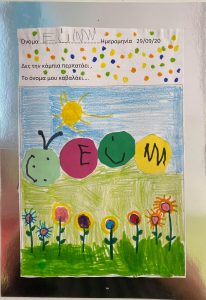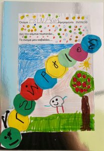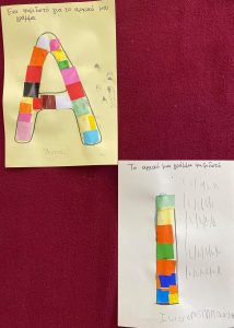 Κυριότερο και ευκολότερο χαρακτηριστικό γνώρισμα του ονόματος – το αρχικό γράμμα. Έτσι λοιπόν τα παιδιά έφτιαξαν ψηφιδωτό κολλώντας μικρά κομμάτια γλασέ χαρτί στο αρχικό γράμμα του ονόματός τους !!!