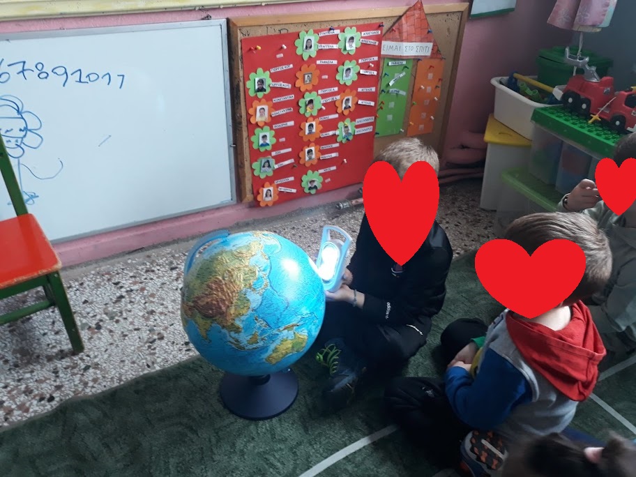 2.Πείραμα με φακό και τη γη για την κατανόηση της εναλλαγής μέρας και νύχτας.
