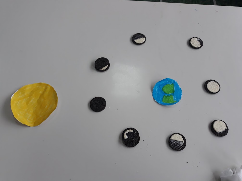 2.Οι φάσεις τη σελήνης με μπισκότα σοκολατένια με γέμιση κρέμας, ακολουθώντας την πορεία της σελήνης από την αύξουσα φάση ως τη φθίνουσα.