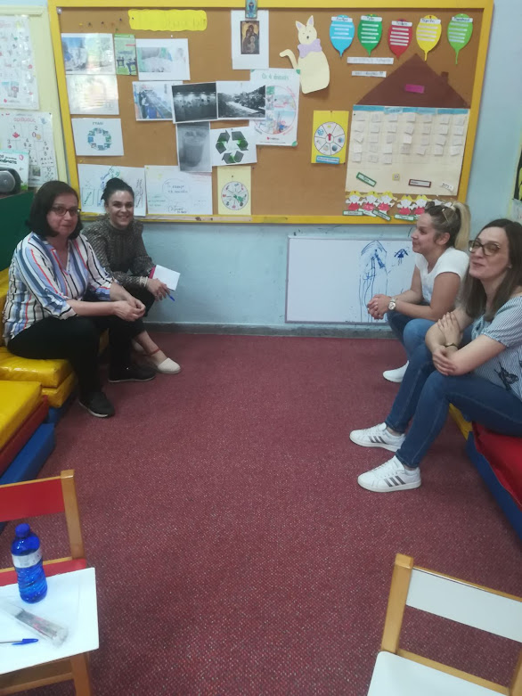 Δραστηριότητες: Σε ομάδες δημιουργούμε αφίσες σε σχέση με την ανακύκλωση και την προστασία του περιβάλλοντος. Διαβάζουμε το παραμύθι Ντενεκεδούπολη, το κάνουμε δραματοποίηση και δημιουργούμε με ανακυκλώσιμα υλικά τους δικούς μας ήρωες.