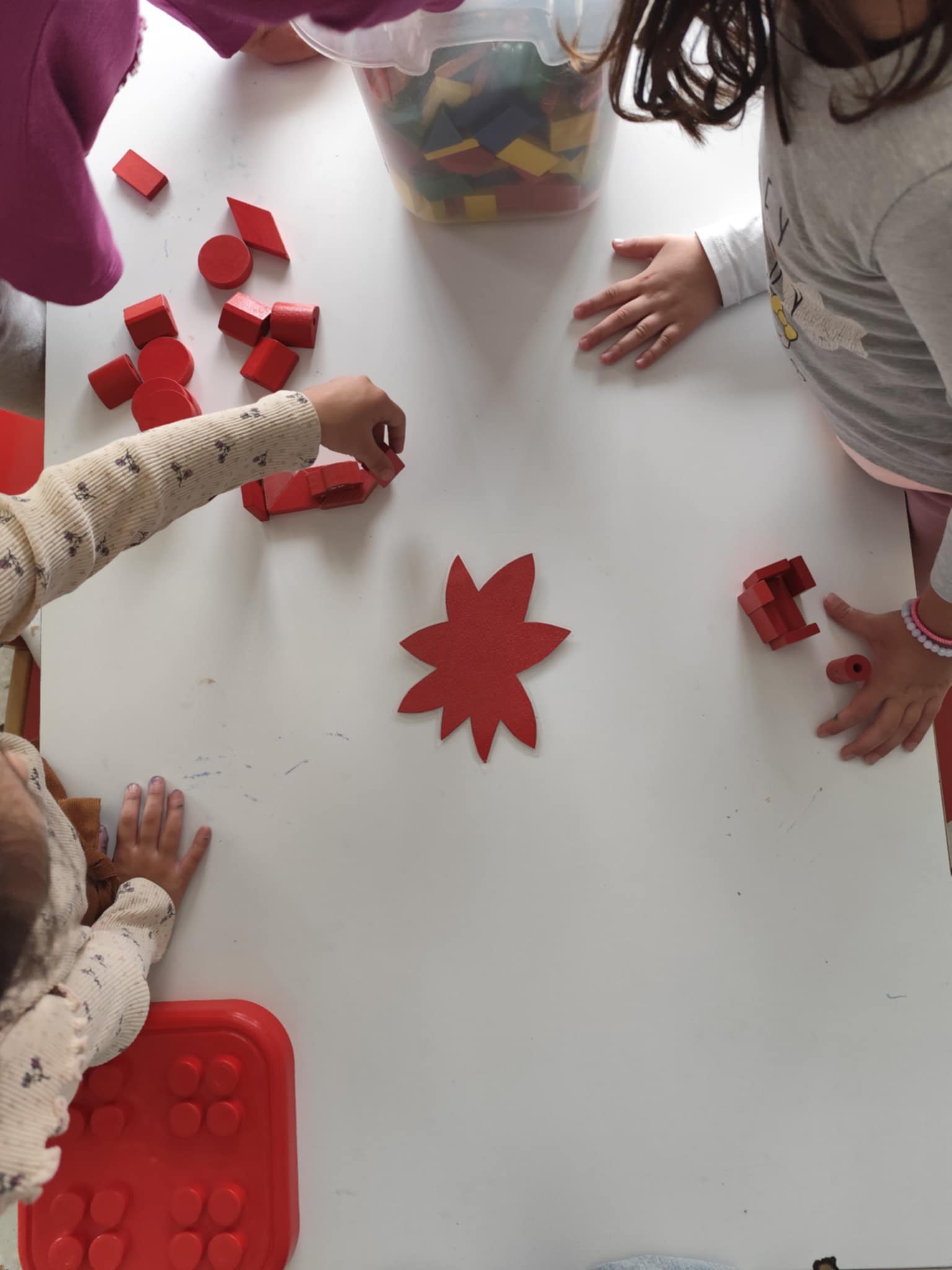 - Τα παιδιά είναι χωρισμένα σε ομάδες και κάθε ομάδα έχει το δικό της χρώμα. Συνεργάστηκαν και συγκέντρωσαν υλικά από τα παιχνίδια της τάξης συμφώνα με το χρώμα της κάθε ομάδας.