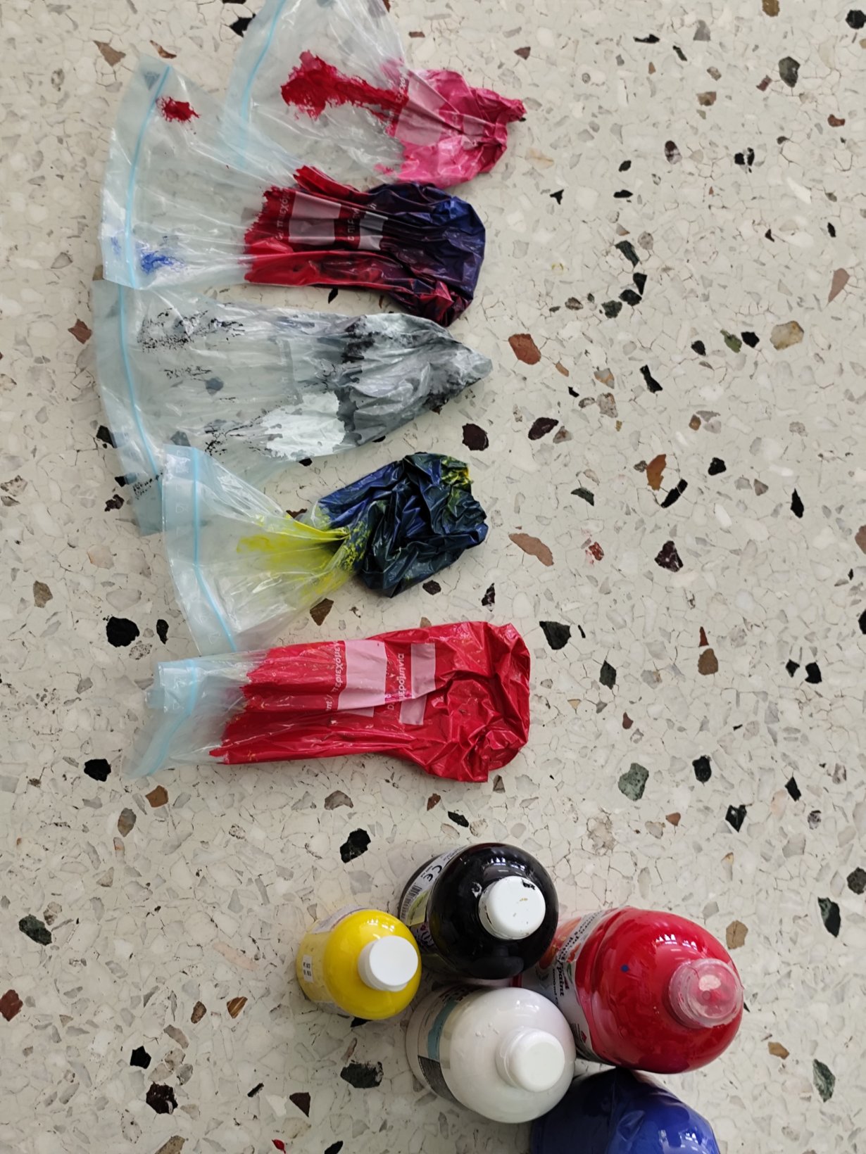- Φτιάξαμε μίξεις χρωμάτων σε σακουλάκια.