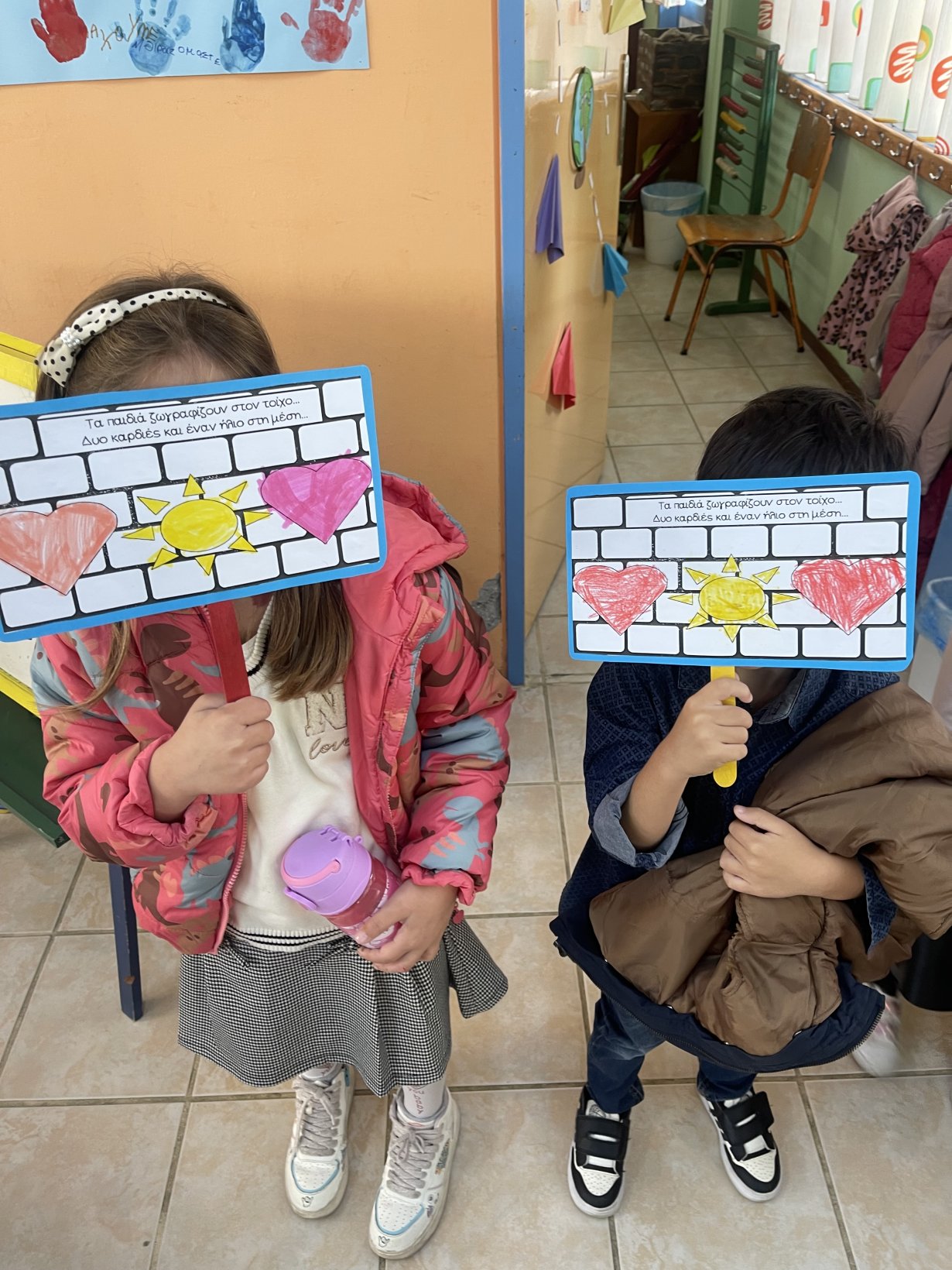Στολίσαμε τις τάξεις μας με τα όμορφα συνθήματα καθώς επίσης δημιουργήσαμε ομαδικές εργασίες!