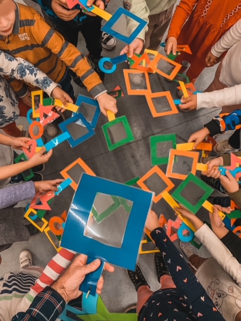 Η εβδομάδα αυτή είχε πολλές περιπέτειες. Αφού μεταμορφωθήκαμε σε σχηματοεξερευνητές της ζούγκλας, ξεκίνησε ένα ταξίδι εκμάθησης και παρατήρησης των γεωμετρικών σχημάτων. Με την βοήθεια των σημαντικών σχηματοεργαλείων αναζητήσαμε και βρήκαμε αντικείμενα στην τάξη – ζούγκλα που έχουν σχήμα τετράγωνο, κύκλο, τρίγωνο και ορθογώνιο.