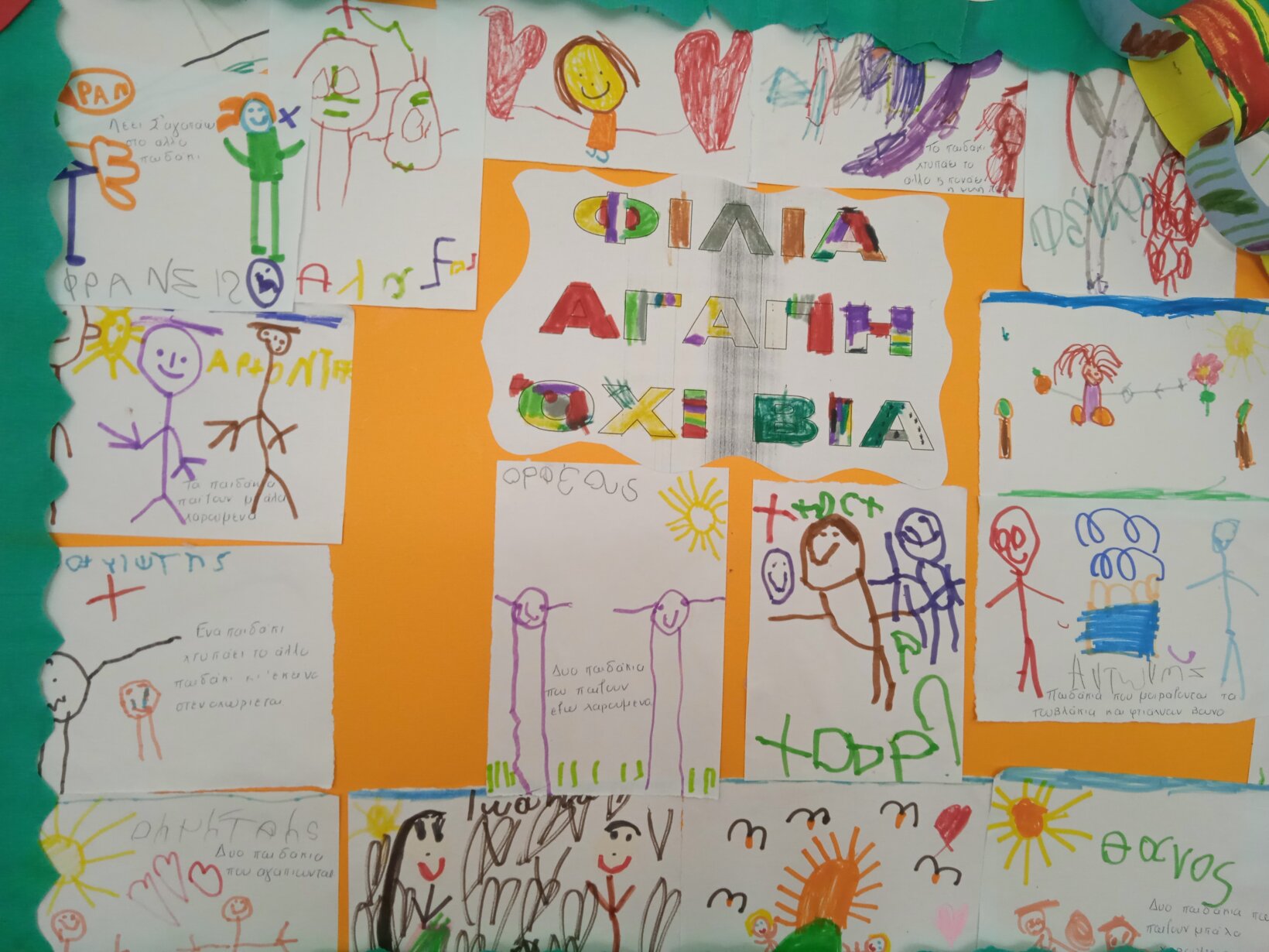 Με αφορμή την παγκόσμια ημέρα κατά του σχολικού εκφοβισμού, συνεργαζόμαστε , ζωγραφίζουμε κατά της βίας και φτιάχνουμε την αφίσα της αγάπης και της φιλίας.
