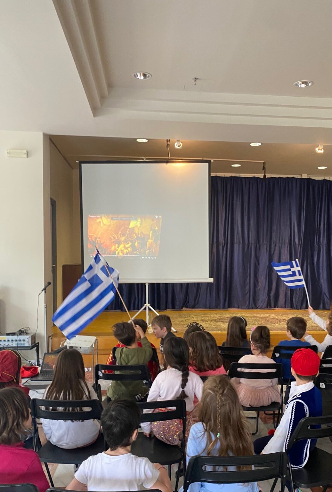 Στο σχολείο μας την Παρασκευή 22/3/2024 πραγματοποιήθηκε με συγκίνηση και περηφάνια ο εορτασμός της ιστορικής επετείου της 25ης Μαρτίου 1821 Φέτος, οι μικροί μας μαθητές, μαζί με τις εκπαιδευτικούς συμμετείχαν σε μια κλειστή γιορτή η οποία ανέδειξε το πνεύμα της ελευθερίας και της ενότητας. Η προετοιμασία για τη γιορτή ξεκίνησε εβδομάδες πριν, με τα παιδιά να μαθαίνουν για τα γεγονότα της Επανάστασης του 1821 μέσα από ιστορίες, τραγούδια και βιωματικές δράσεις. Με τη βοήθεια των εκπαιδευτικών, δούλεψαν ομαδικά δημιούργησαν όμορφες κατασκευές, ήρθαν σε επαφή με την λαϊκή τέχνη και την παράδοση και έμαθαν για τις αξίες της ελευθερίας και της αυτοθυσίας. Ευχαριστούμε τα παιδιά μας, που με το κέφι και την αγάπη τους έκαναν αυτήν την ημέρα τόσο ξεχωριστή.