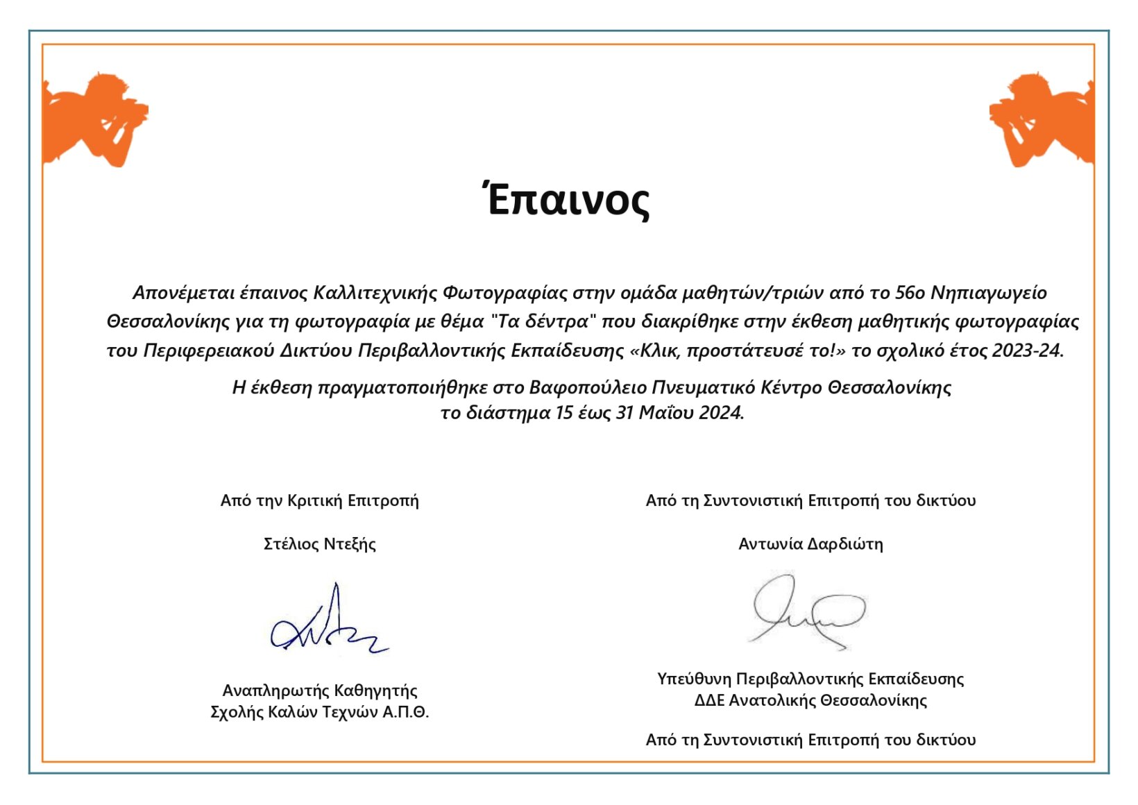 Πιστοποιητικό Αριστείας για τις Δράσεις Ρομποτικής που υλοποιήσαμε κατά την Ευρωπαϊκή Εβδομάδα Κώδικα, στο 56ο Νηπιαγωγείο Θεσσαλονίκης -Τενεκεδένιο.