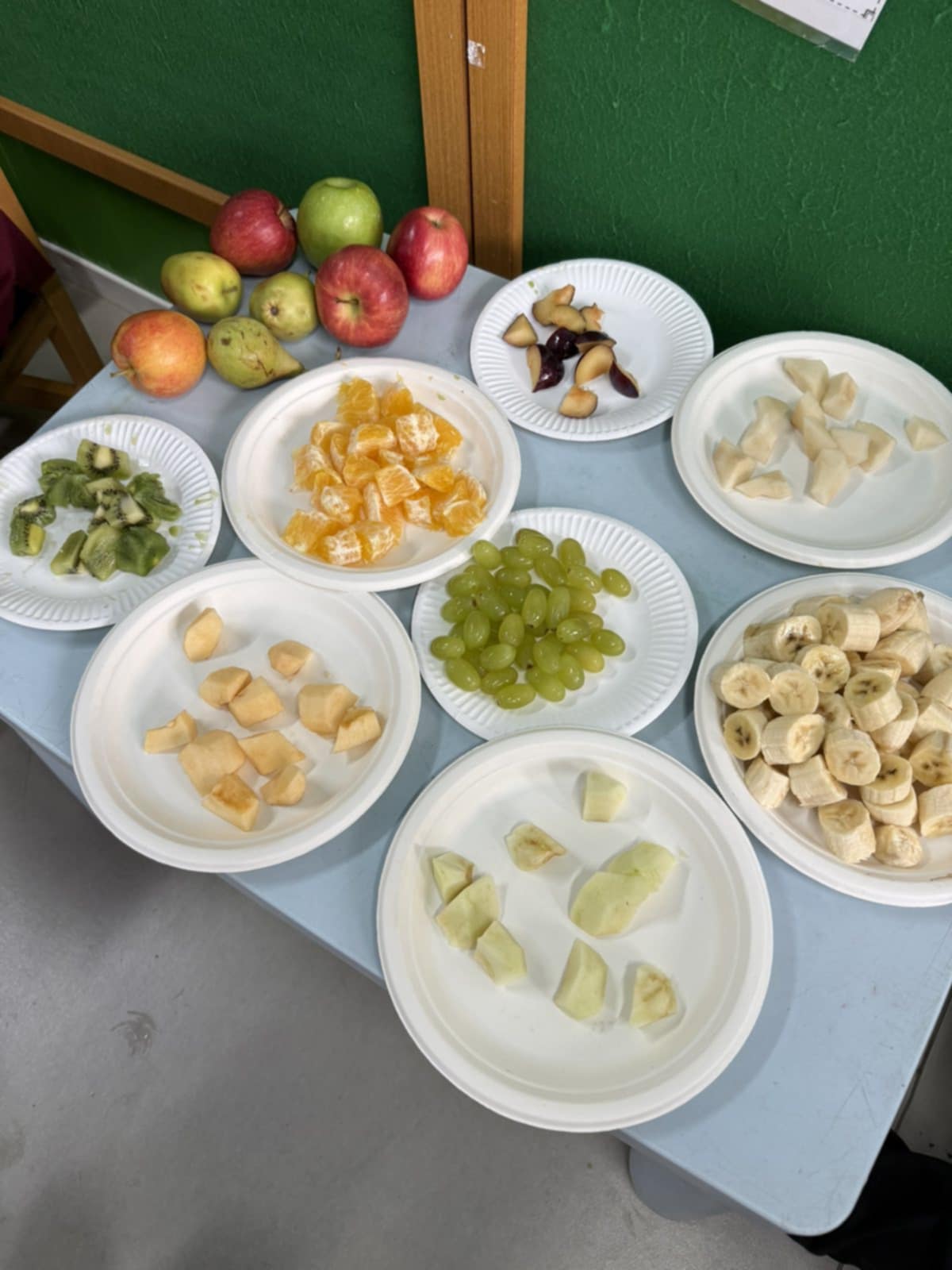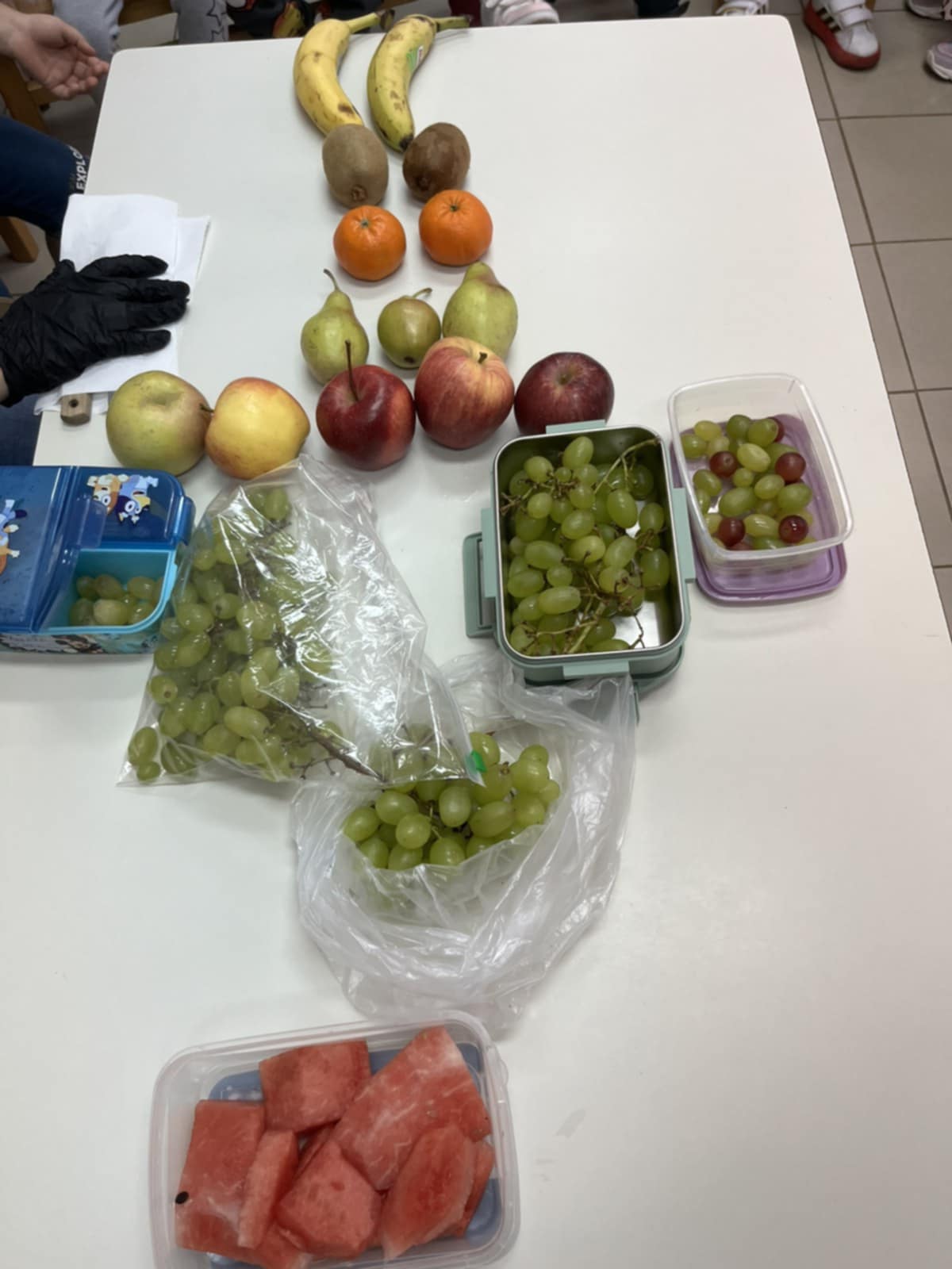 Στη συνέχεια και έπειτα απο την έντυπη συγκατάθεση των γονέων και την ενημέρωση των εκπαιδευτικών για τυχόν αλλεργίες των μαθητών ήρθε η ώρα της δοκιμής και του παιχνιδιού με τα αγαπημένα μας φρούτα!!
