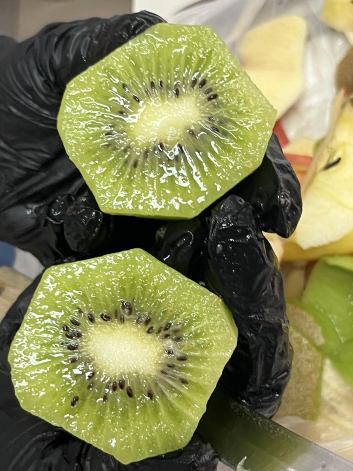 Κόψαμε τα φρούτα, ολόκληρο μισό, είδαμε πως είναι εσωτερικά, τα τεμαχίσαμε
