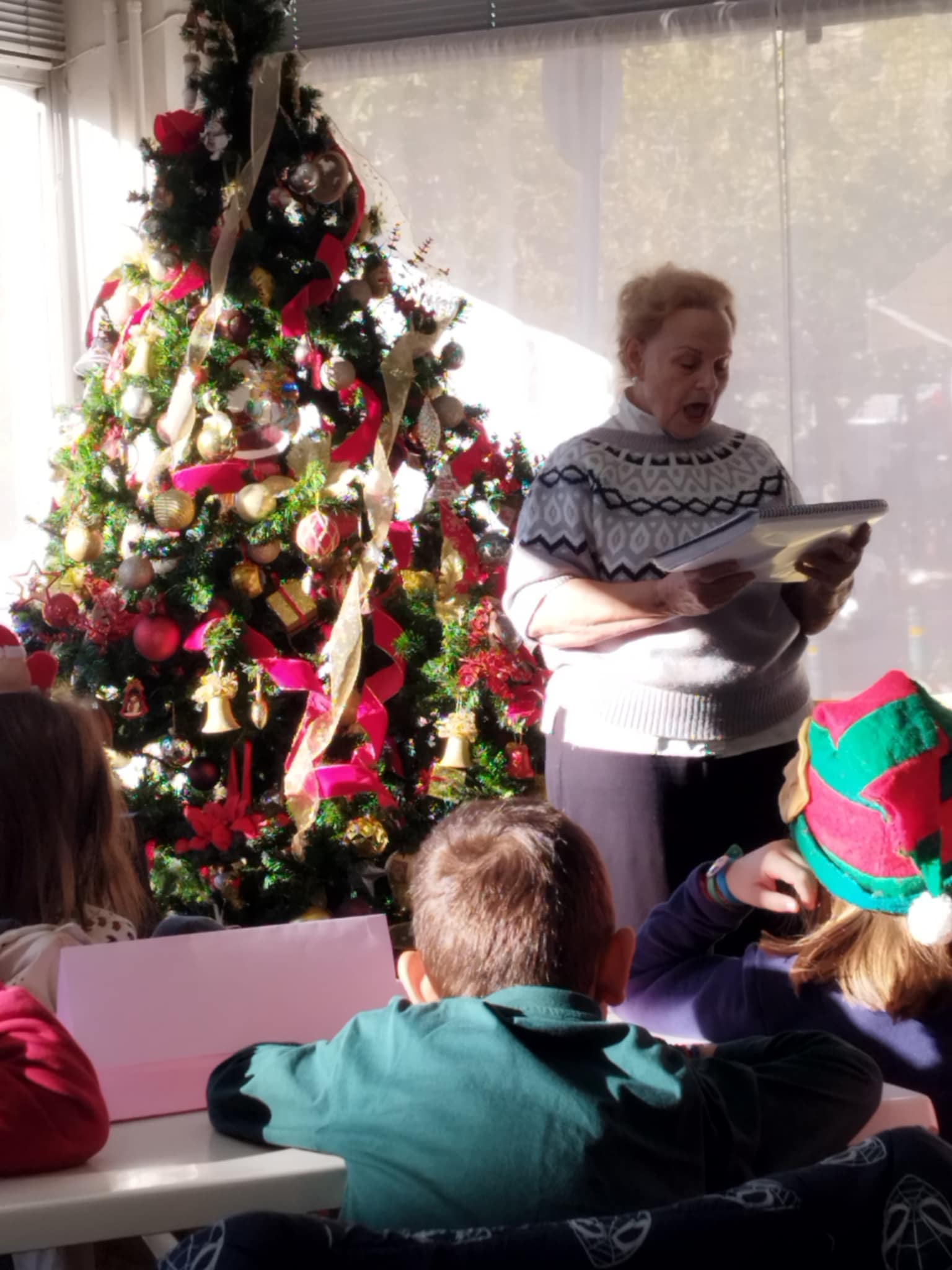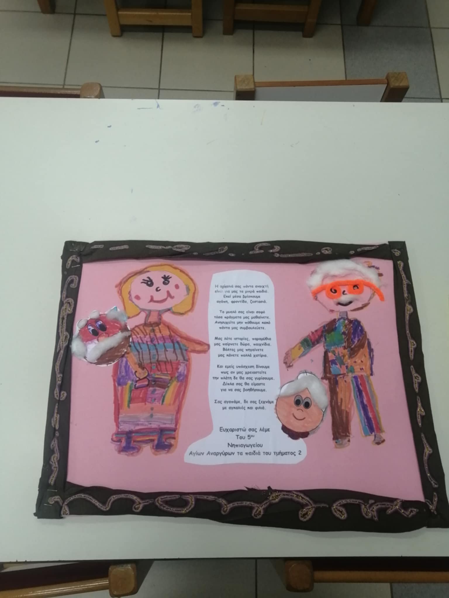 Η κ. Δώρα, υπεύθυνη του Γ ΚΑΠΗ Αγίων Αναργύρων, ήταν εκεί να μας υποδεχτεί με χαμόγελο και ζεστή αγκαλιά, μας σύστησε στις υπέροχες γιαγιάδες που μας περίμεναν, μας ξενάγησε στον χώρο και μοιράσαμε τις καρτούλες και τα δώρα μας…..